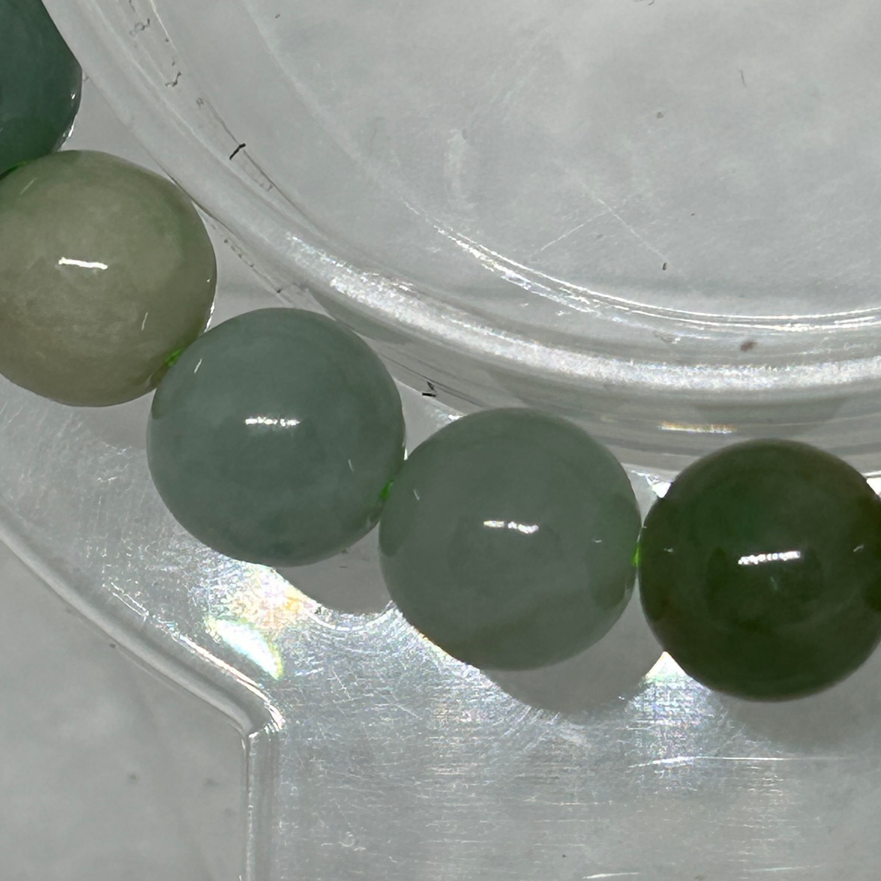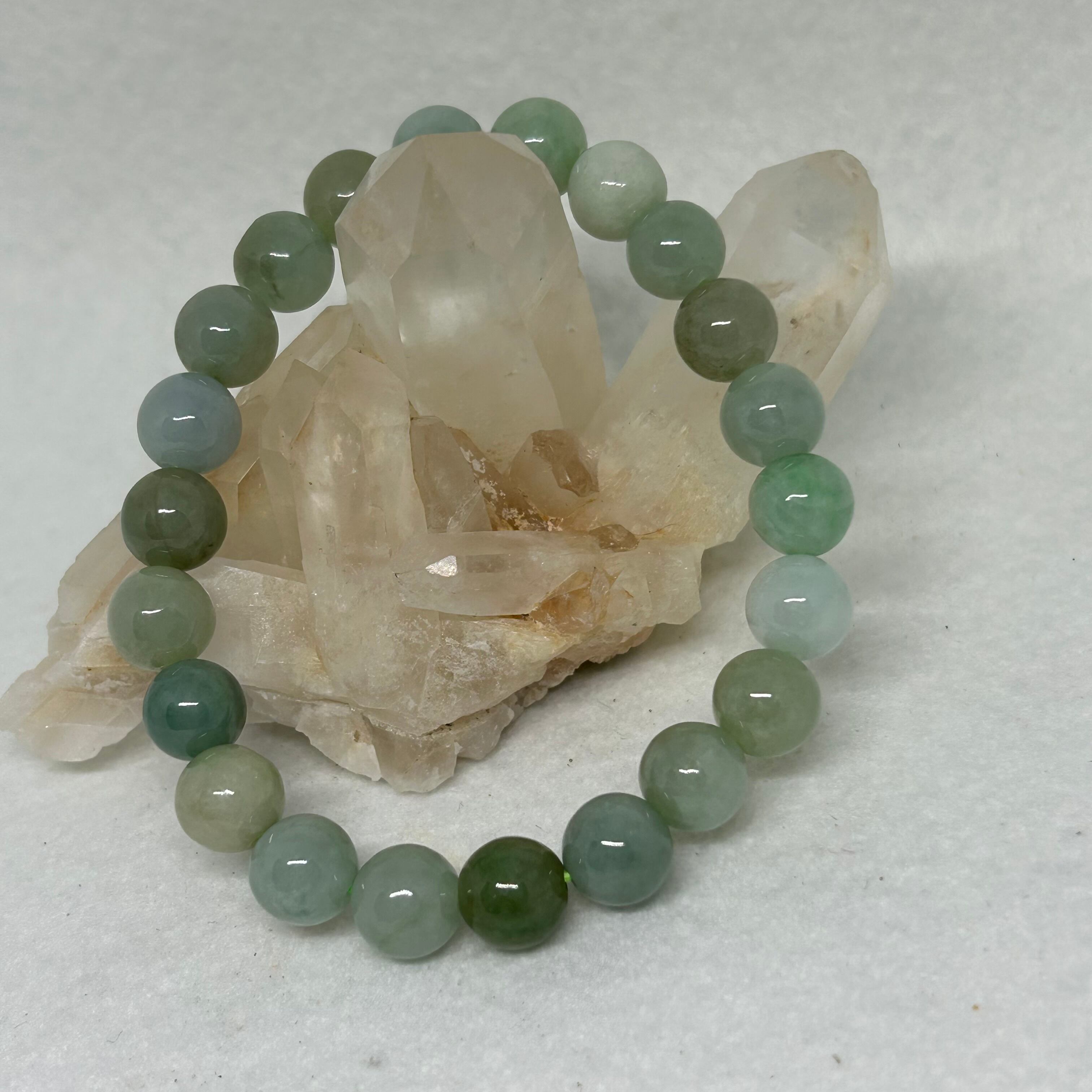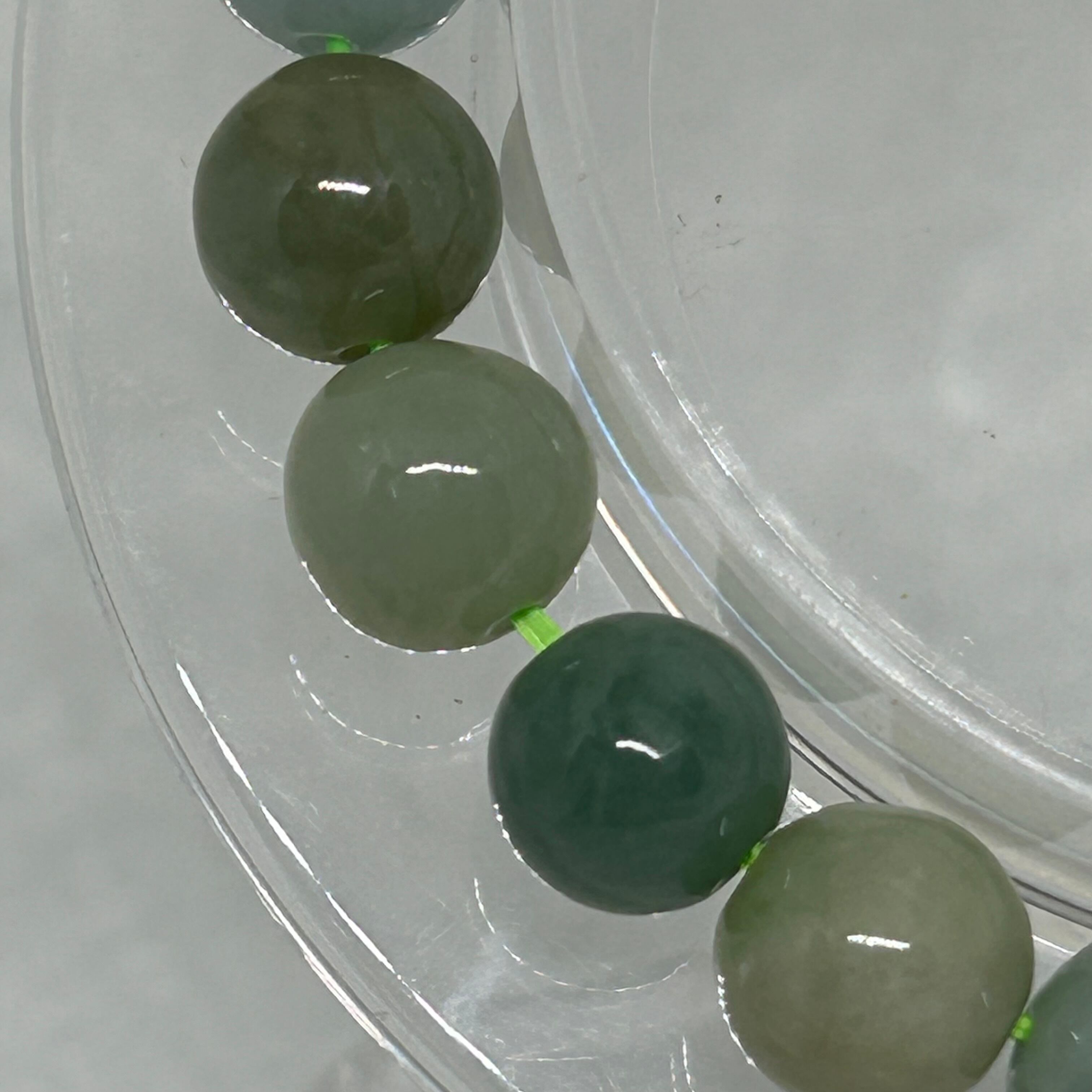 上品な輝きを放つAランクの翡翠を使用した8mmのブレスレットです。翡翠は古くから幸運をもたらすとされ、その美しい緑色と滑らかな肌触りが魅力です。ブレスレットの丸いフォルムと8mmの大きめなビーズが存在感を引き立て、腕元を華やかに演出します。石そのものが持つパワーに加え、天然石特有の磁気効果も期待できるため、自己向上やパワーストーンとしての活用にピッタリです。毎日のコーディネートにプラスするだけで、特別感を演出するアイテムとしておすすめです。