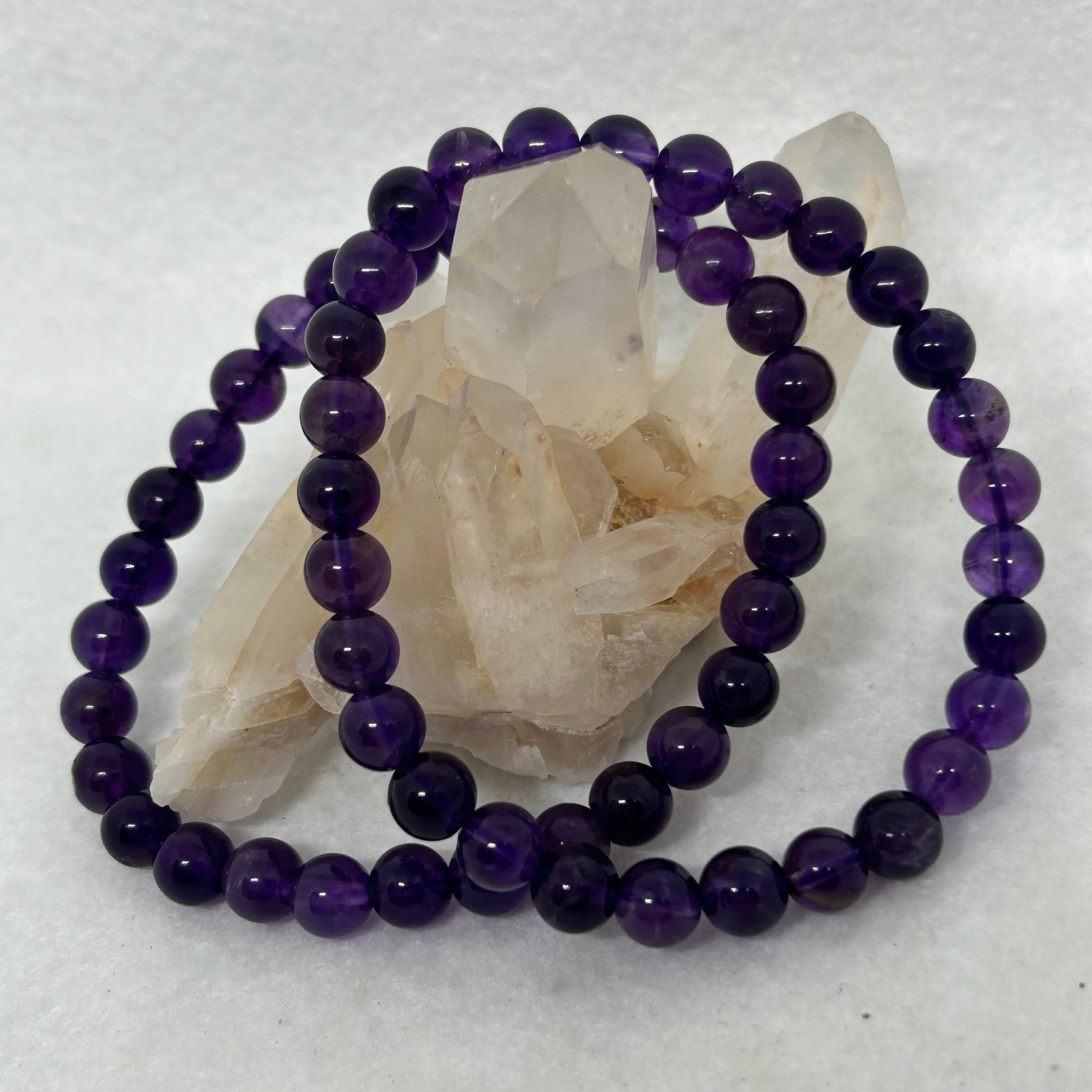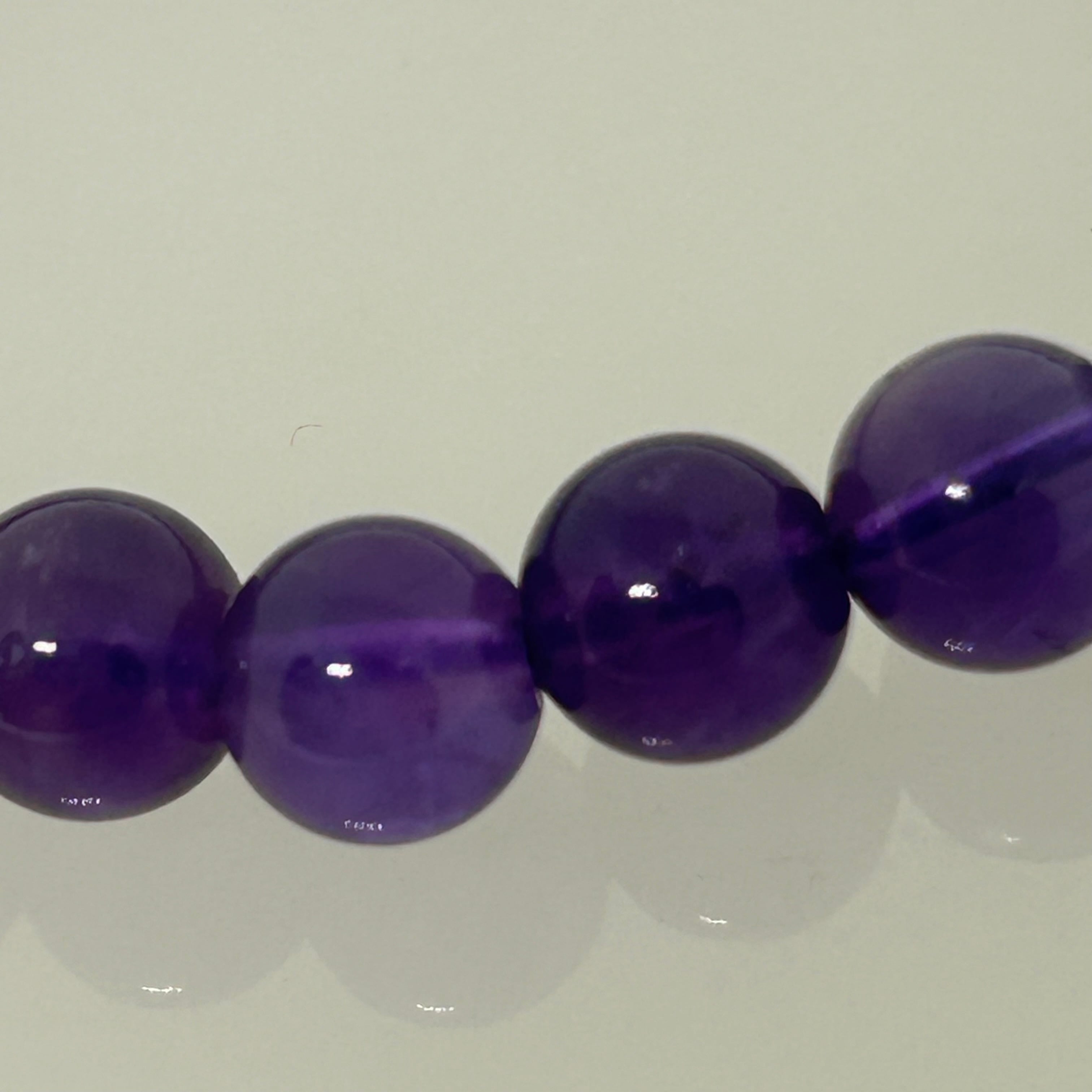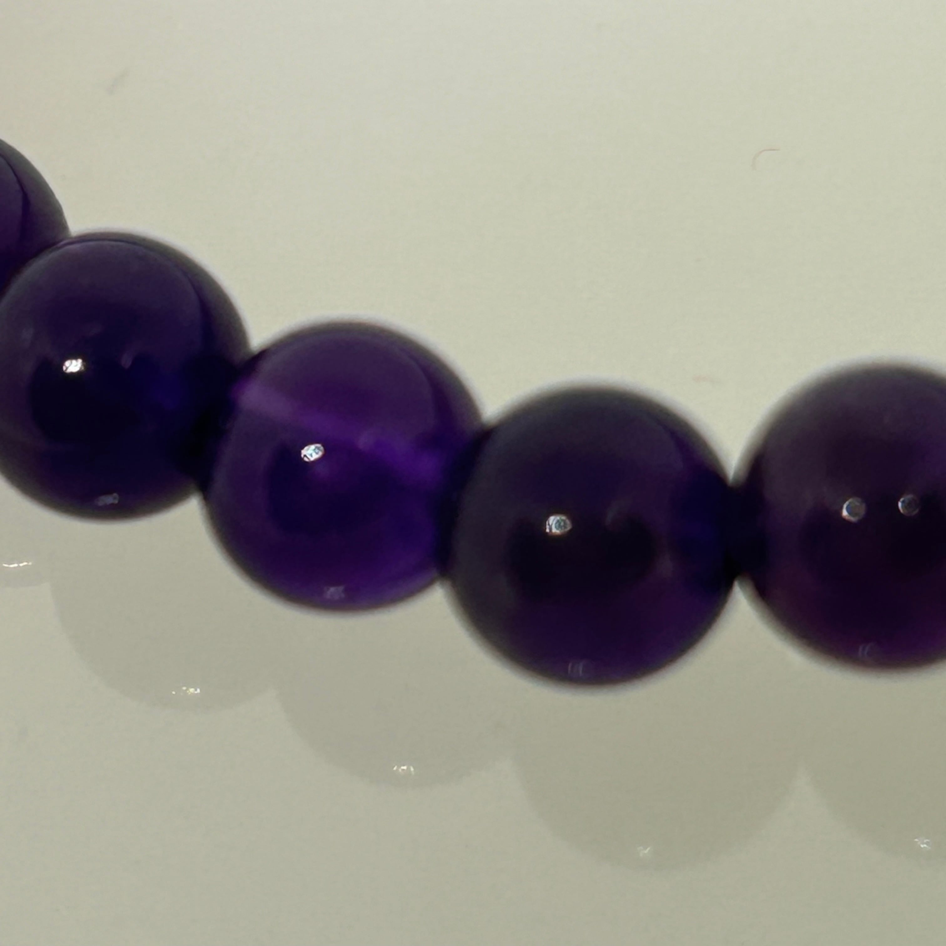 美しいアメジストを使用した6mmのブレスレット。パープルの色合いが印象的で、洗練された装いにぴったりです。アメジストはストレスを和らげ、心を穏やかにしてくれると言われています。一日の疲れを癒し、心身のバランスを整えるパワーストーンとして人気です。石の大きさが6mmのため、存在感もありながら軽く、長時間の使用にも適しています。どんなスタイルにも合わせやすく、日常のアクセサリーとしてお使いいただけます。アメジストのブレスレットでしっかりと癒しの時間をもたらし、心と体の調和を感じてください。