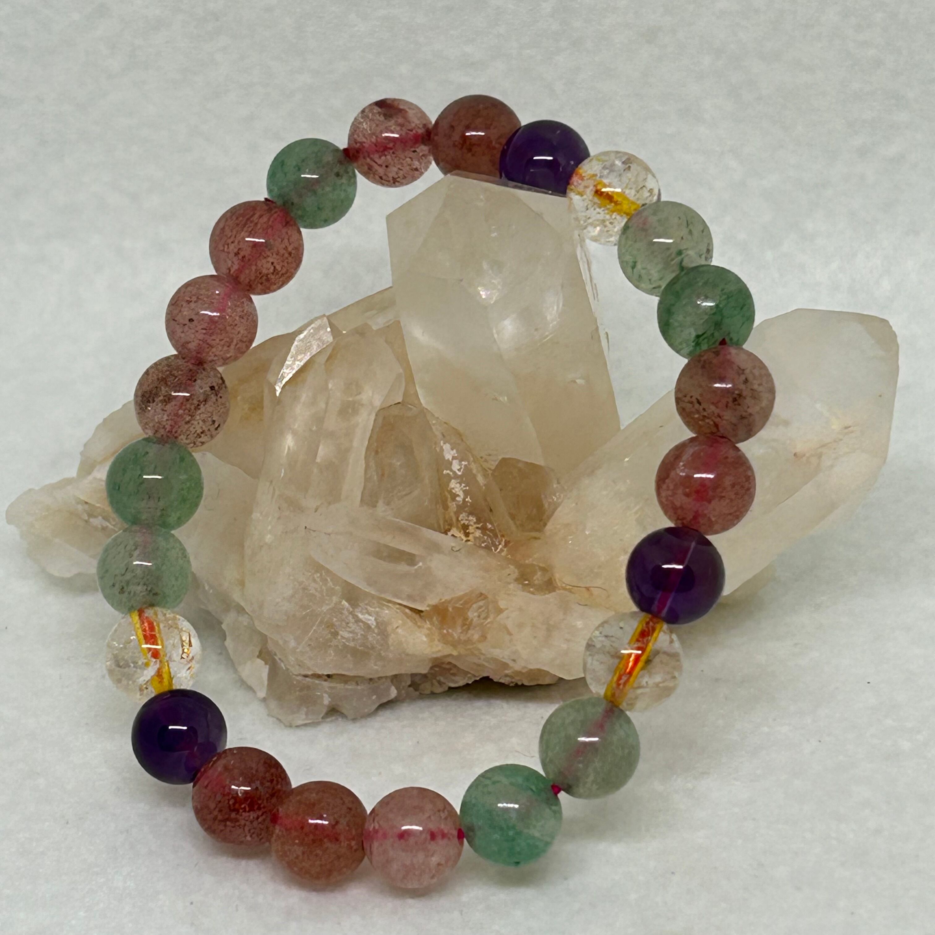 おしゃれで個性的なミックスクォーツ 8mm ブレスレット。多彩なカラーストーンが組み合わさったデザインで、一つ一つ異なる模様が味わい深さを演出します。その美しさはまさに天然石ならでは。どんなスタイルにもマッチします。また、パワーストーンとしても注目されており、あなたのパワーチャージをサポートします。