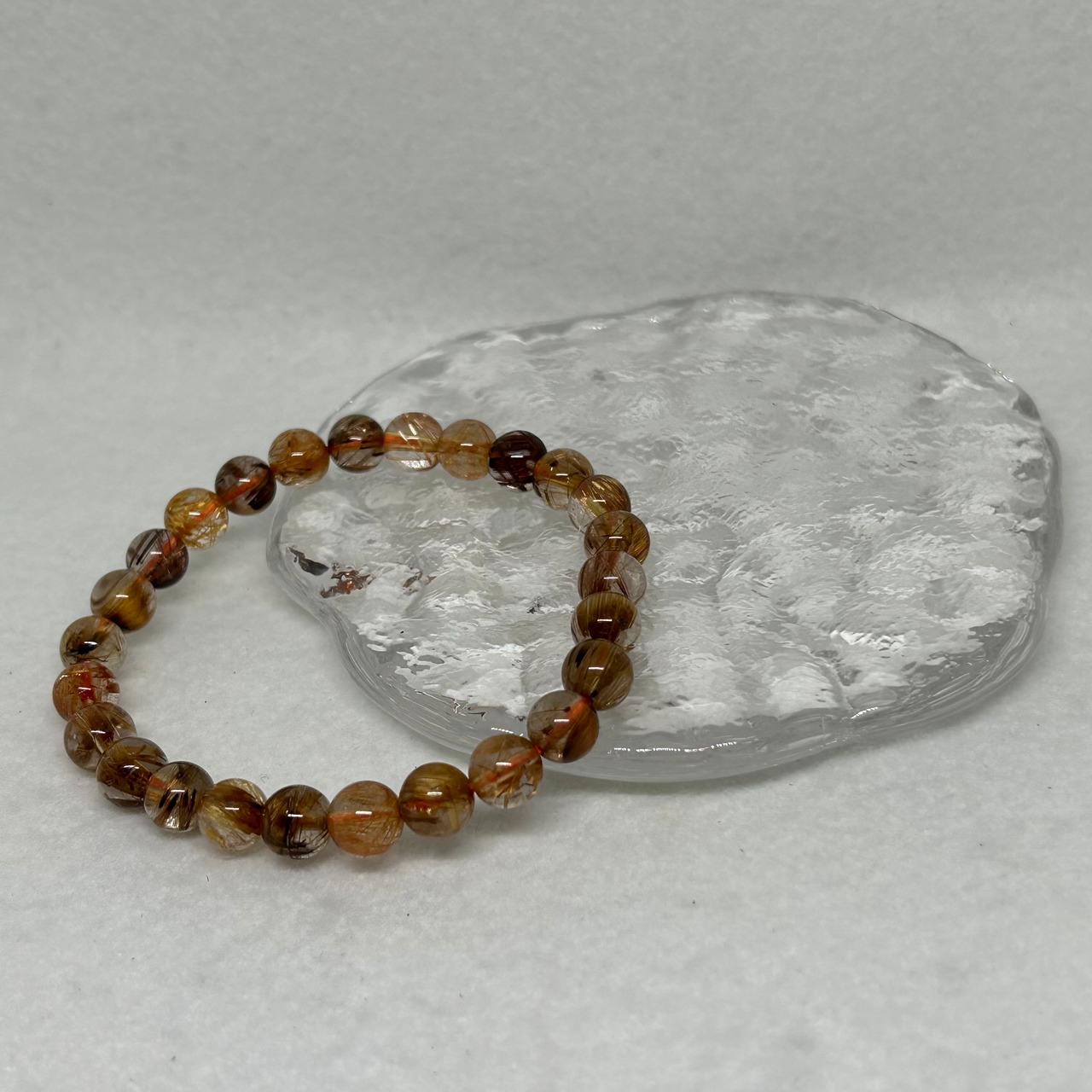 ルチルクォーツは、金色や銀色の結晶が美しく入り混じった石です。その光沢が腕元をより一層魅力的に演出してくれます。また、ルチルクォーツには持ち主に幸福をもたらすパワーがあるとも言われており、パワーストーンとして人気があります。日常の中でもパワフルなサポートをしてくれますので、デイリーアクセサリーとしても大活躍してくれます。自分へのご褒美や特別な方へのギフトにも最適です。ぜひ、ご自身のパワーストーンコレクションに加えてみてください。