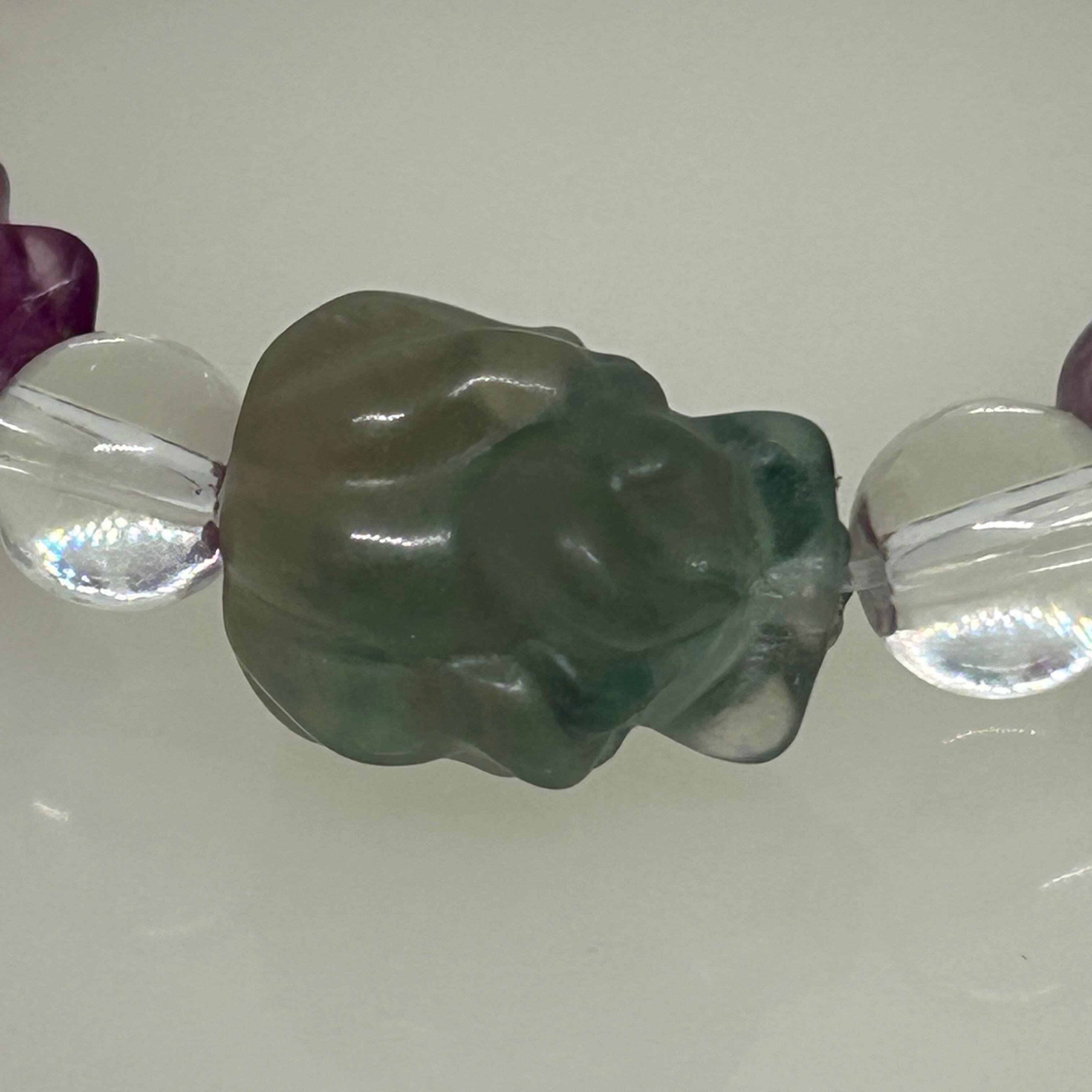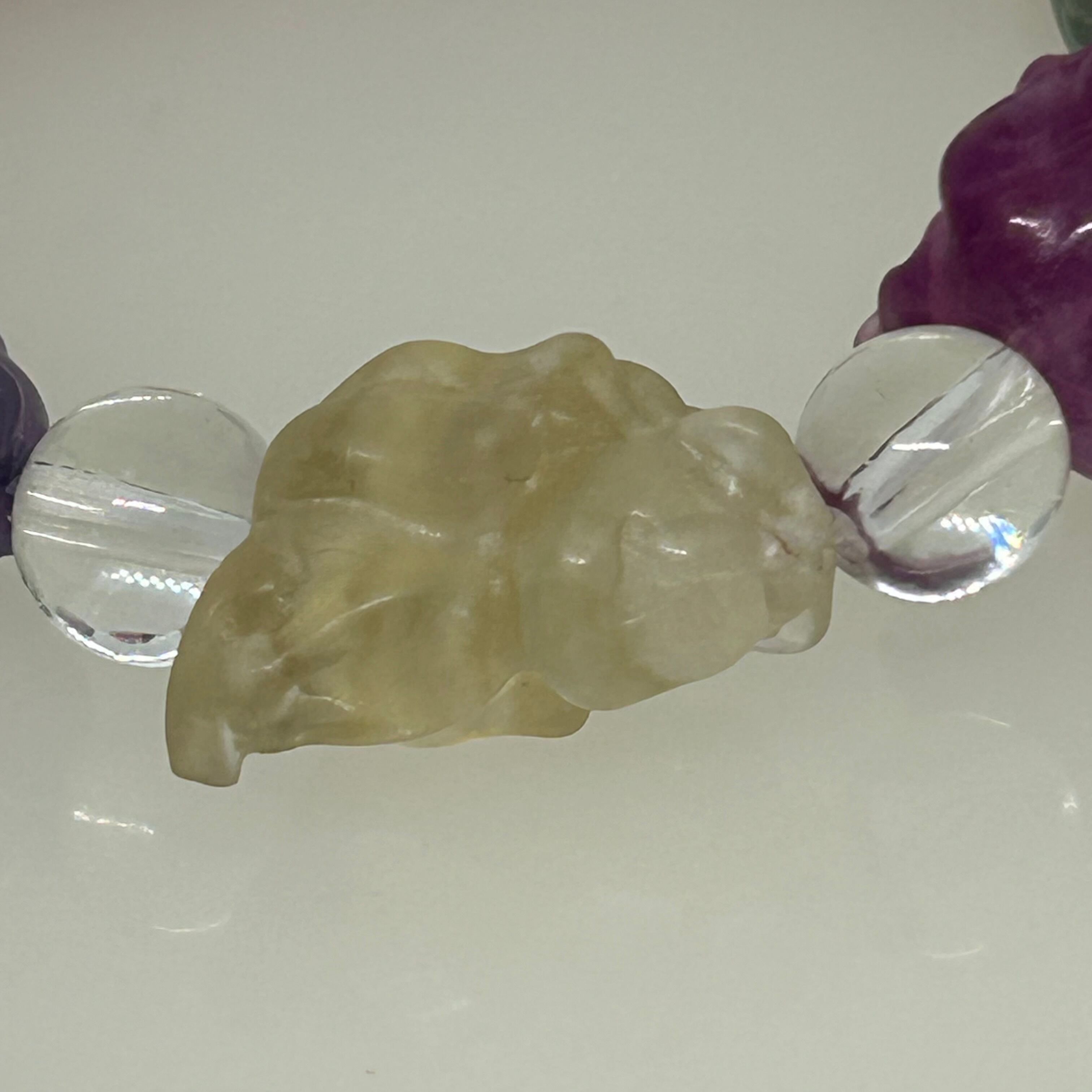 豪華な輝きを放つフローライトが九尾狐の形をしたブレスレットです。