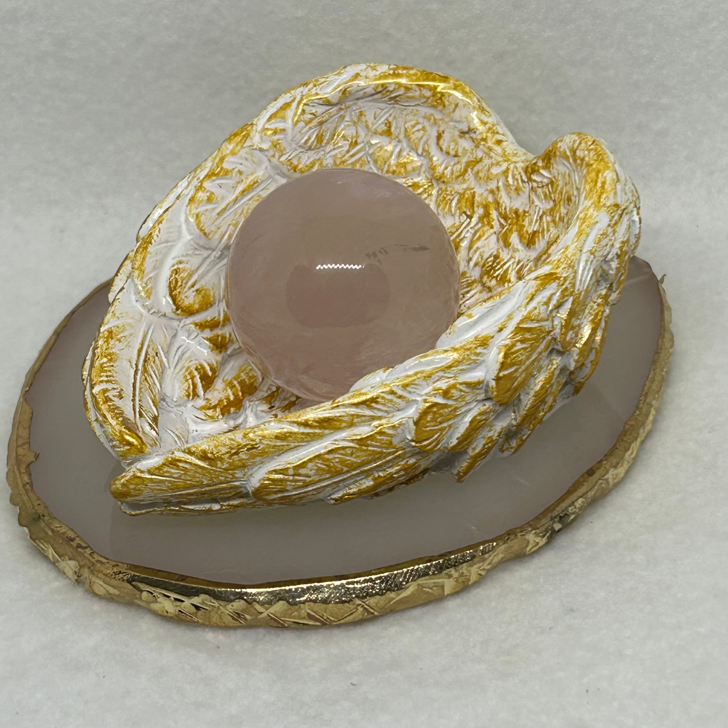 アイボリーナッツ エンジェルウィング スフィアスタンド。美しいアイボリーナッツの素材を使った、天使の羽根デザインのスフィアスタンドです。存在感のある繊細なデザインで、お部屋のインテリアにぴったりなアイテムです。天然素材を使用しているため、一つ一つのスフィアスタンドが風合いの違いを持ち、その個性的な表情が魅力です。天使の羽根が持つエネルギーと、スフィアの美しさが融合したこのアイボリーナッツ エンジェルウィング スフィアスタンドは、お部屋を特別な空間へと演出してくれます。自分へのご褒美や大切な人へのギフトとしてもぴったりです。是非、特別なアイテムと共に癒しのひとときをお楽しみください。