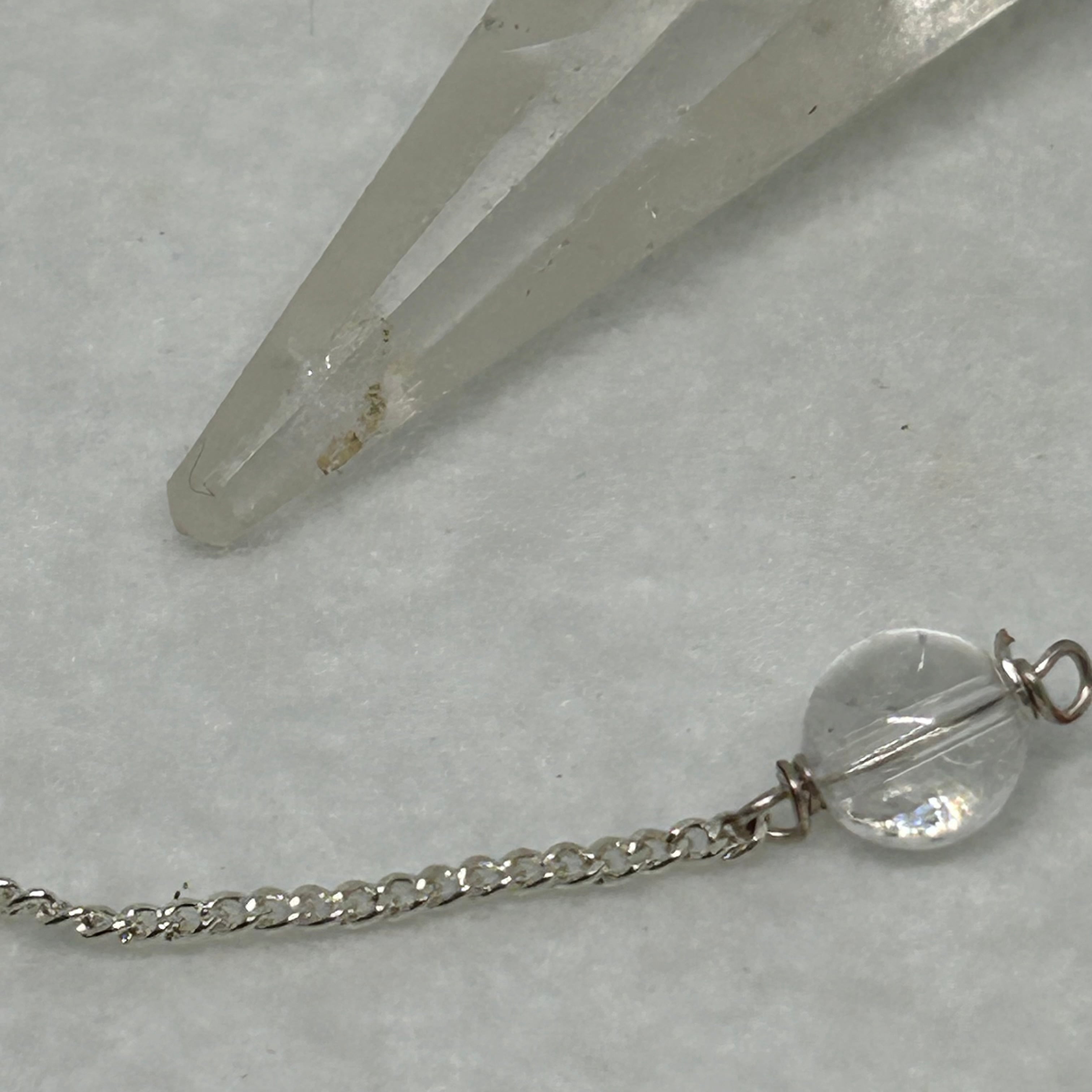 ヒマラヤ産水晶のペンデュラムです。水晶はパワーストーンの代表として知られ、多くの方に愛されています。このペンデュラムは、水晶のエネルギーを活かしたダウジングに最適です。