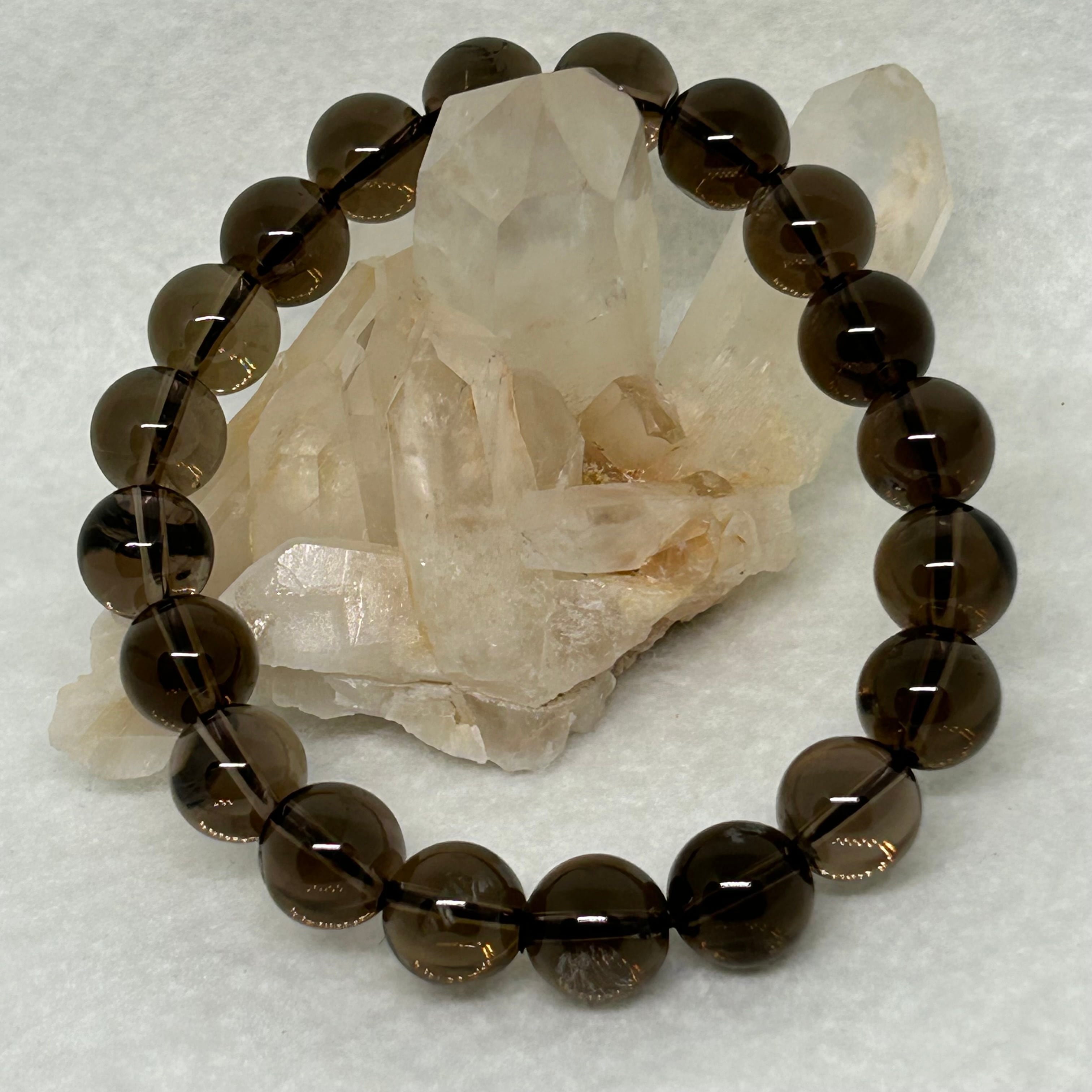 あなたの手首に輝くスモーキークォーツのブレスレット。その美しさに魅了され、日常の中にひとときの癒しを取り入れてください。
