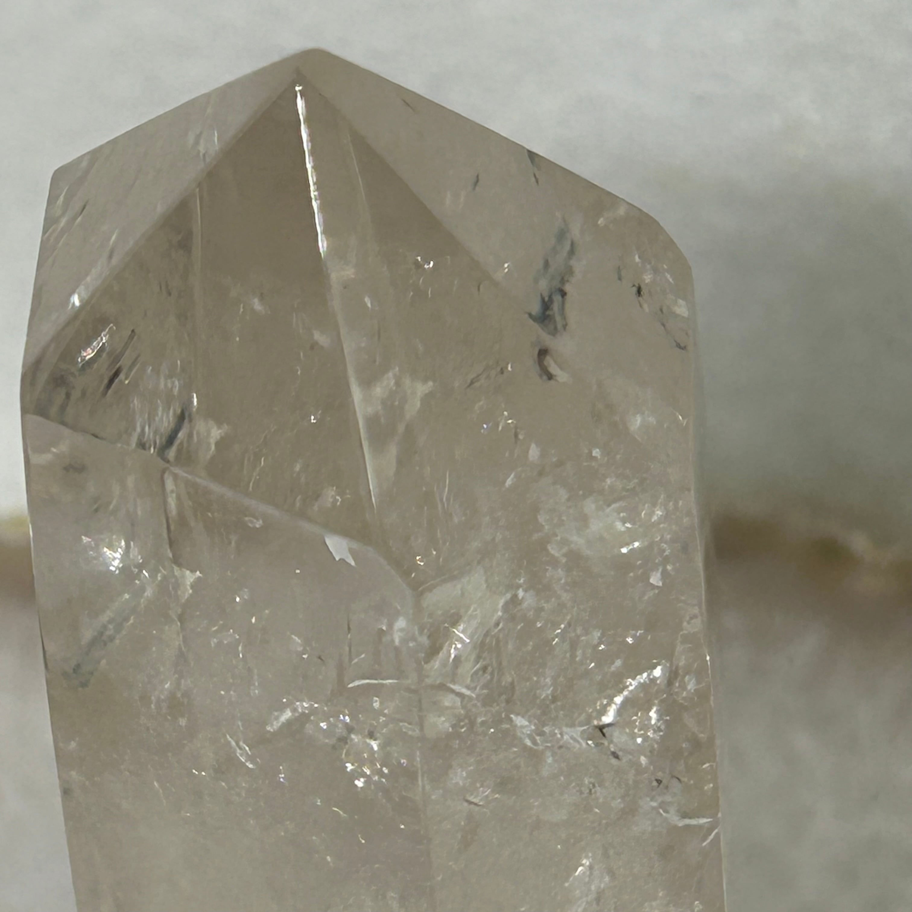 このクリスタルポイントは、ヒーリング効果やパワーストーンとしての効果もあると言われています。心を穏やかにし、マイナスなエネルギーやストレスから守ってくれるとされています。また、持ち主のポジティブなエネルギーを高め、目標達成や直感力の向上にも役立ちます。