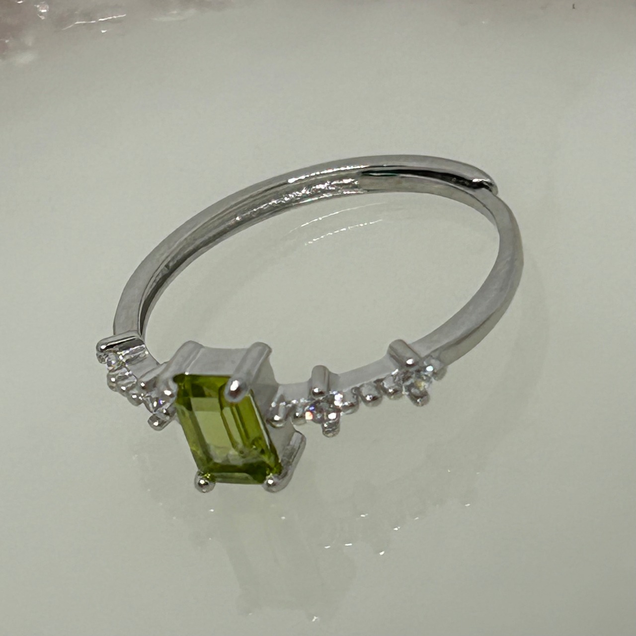 自然な輝きが美しい、ペリドットのカットリング。8月の誕生石であるペリドットは、幸せをもたらすと言われています。その輝きを指先で楽しめる、シンプルでエレガントなデザインです。