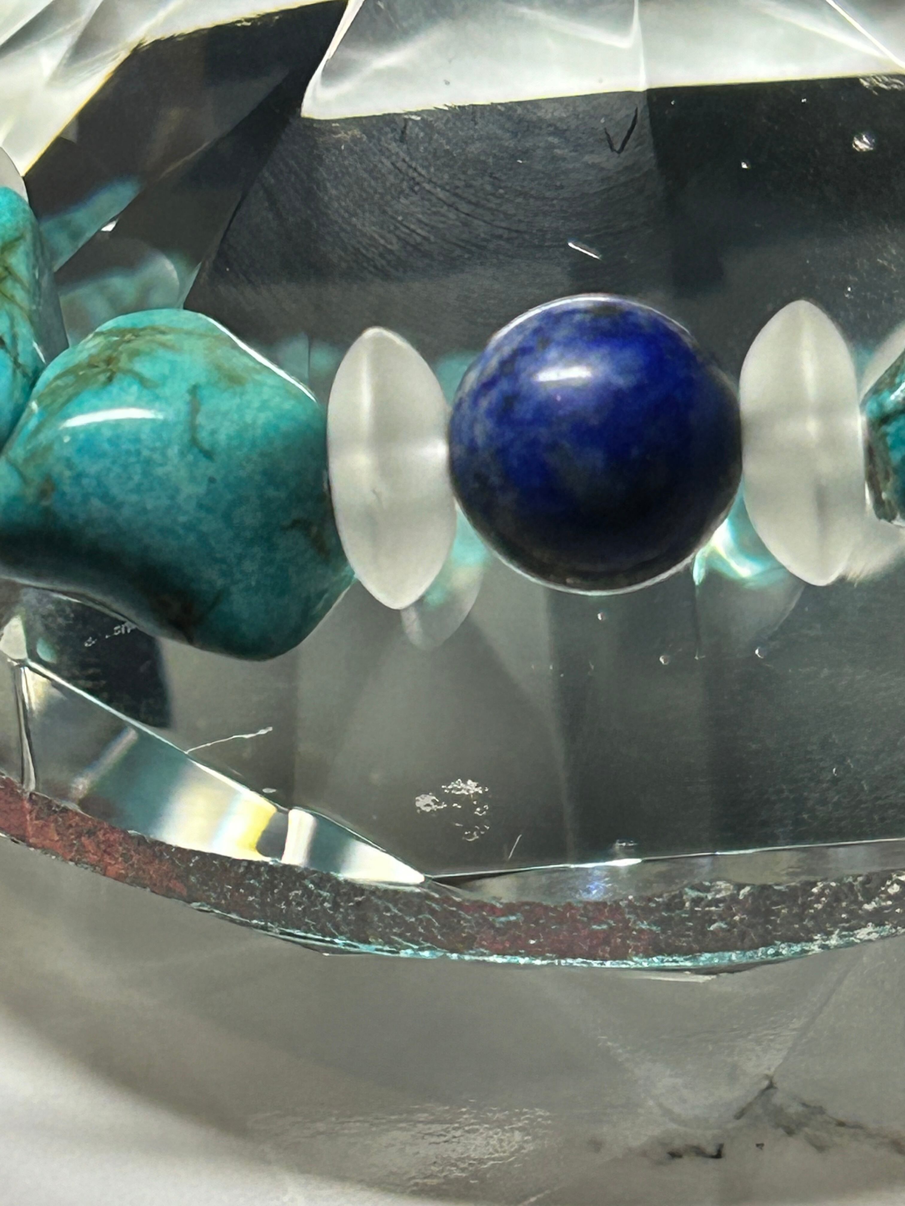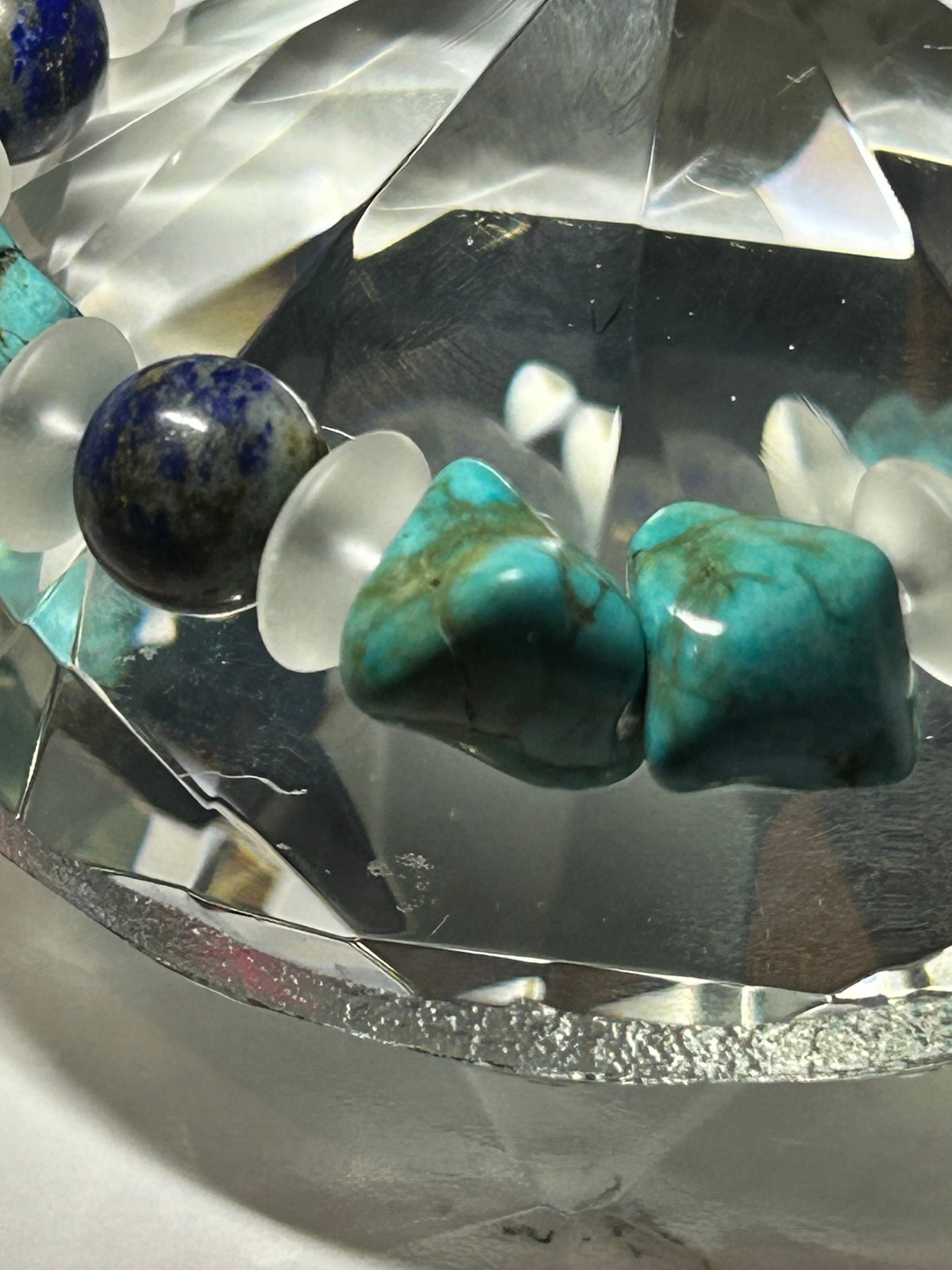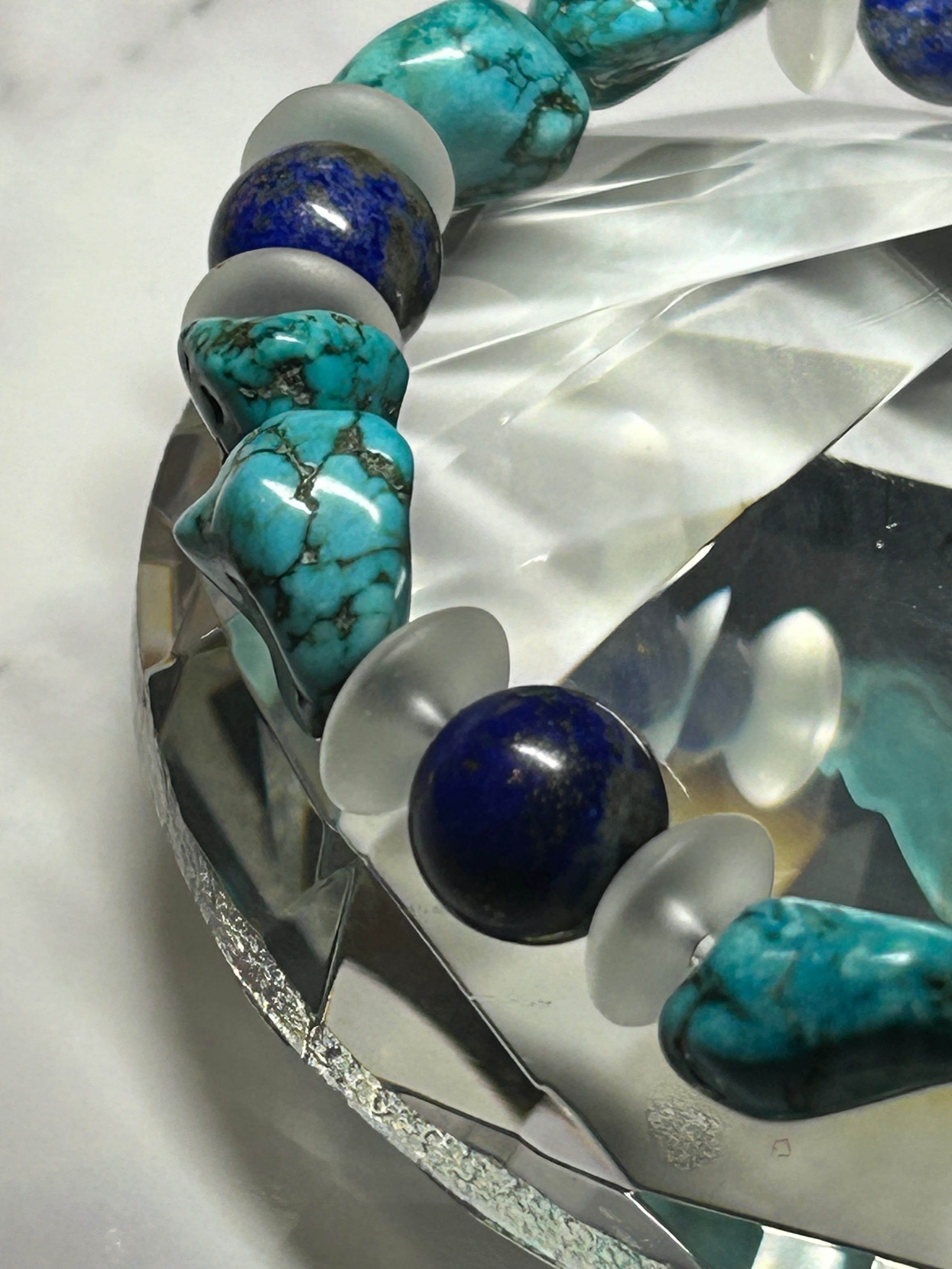 シンプルながらも存在感のあるハウライトターコイズ&ラピスラズリブレスレット。ハウライトターコイズとラピスラズリの組み合わせは、上品かつ個性的な印象を与えます。フロスト水晶のクリスタルが加わることで、より一層エレガントさが増します。