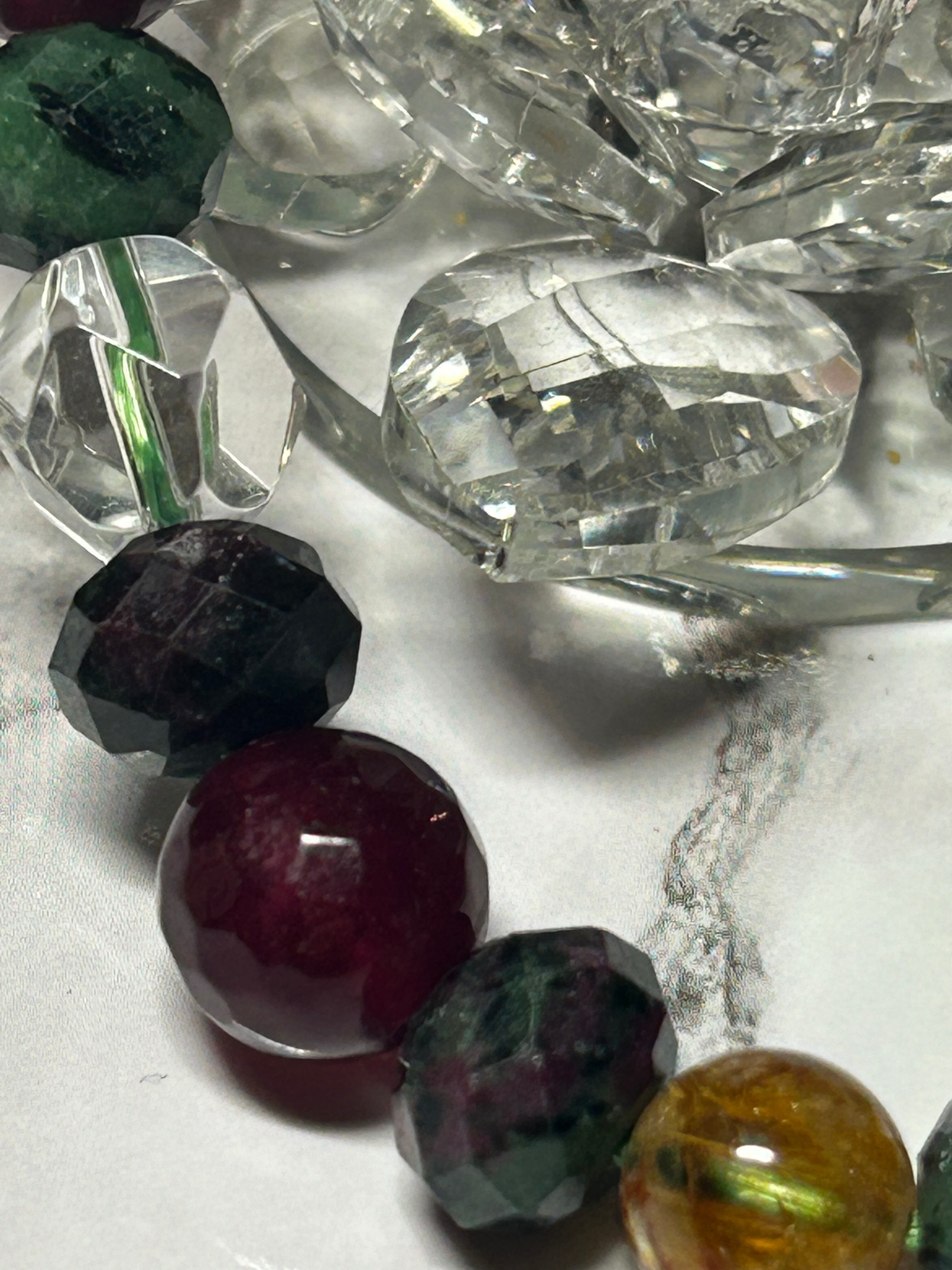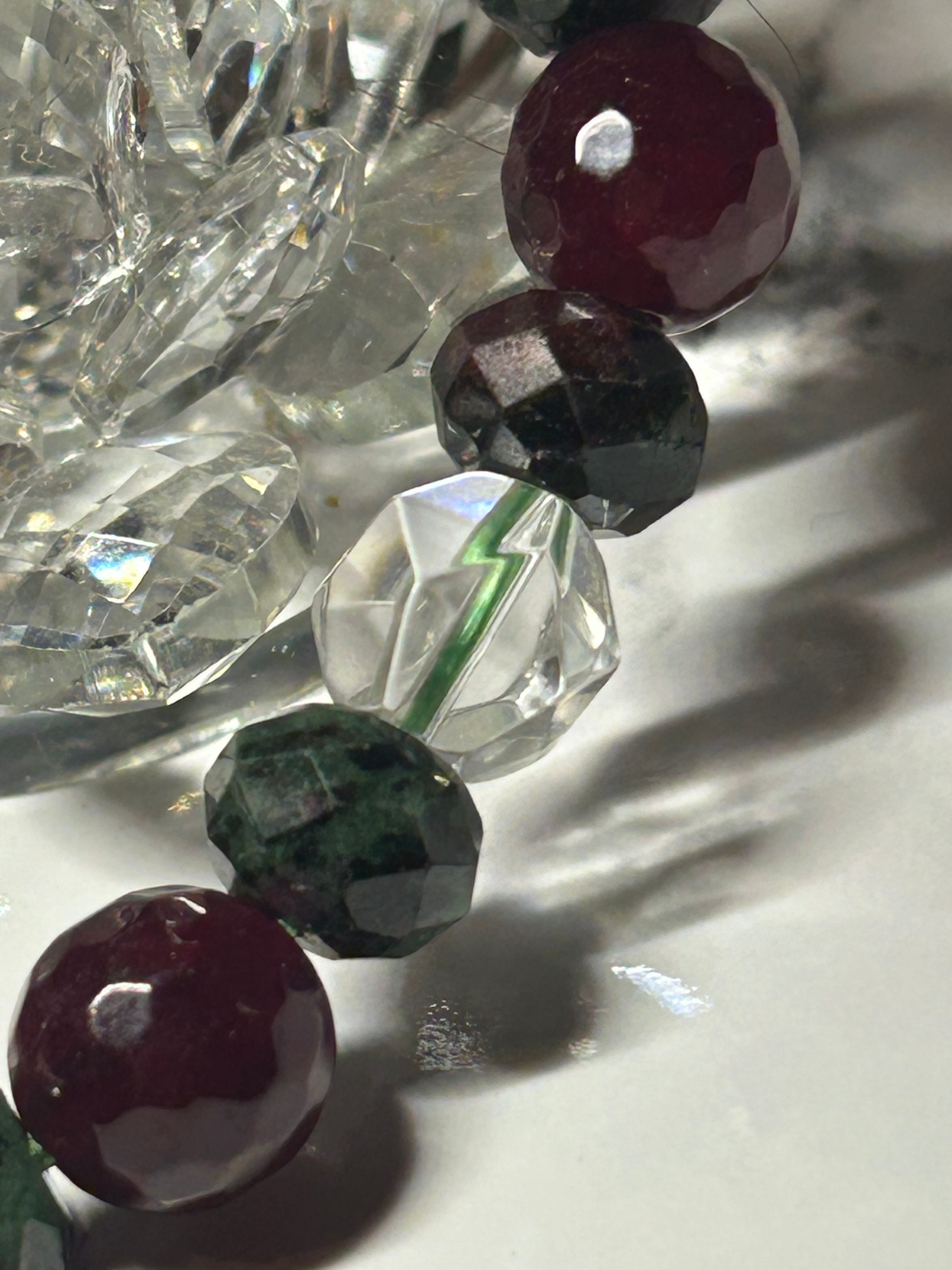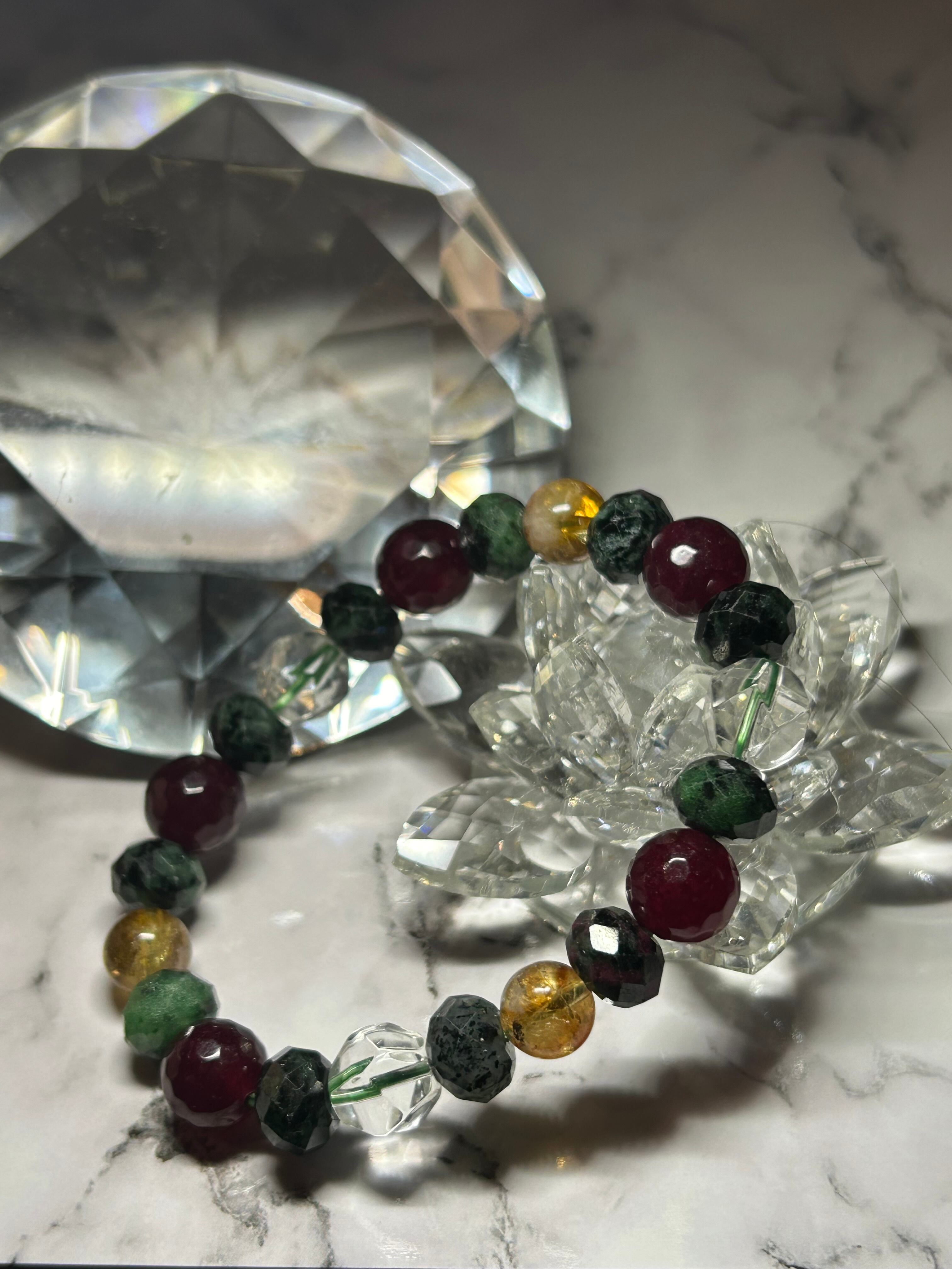 愛と目標達成の象徴となるガーネットブレスレット。ダークレッドのガーネットとルビーインゾイサイト、シトリンが美しく煌めく、まるでクリスマスカラーのような輝きを放っています。このブレスレットは、強くなりたいと思う方や自分自身を信じる気持ちを持ちたい方にぴったりです。