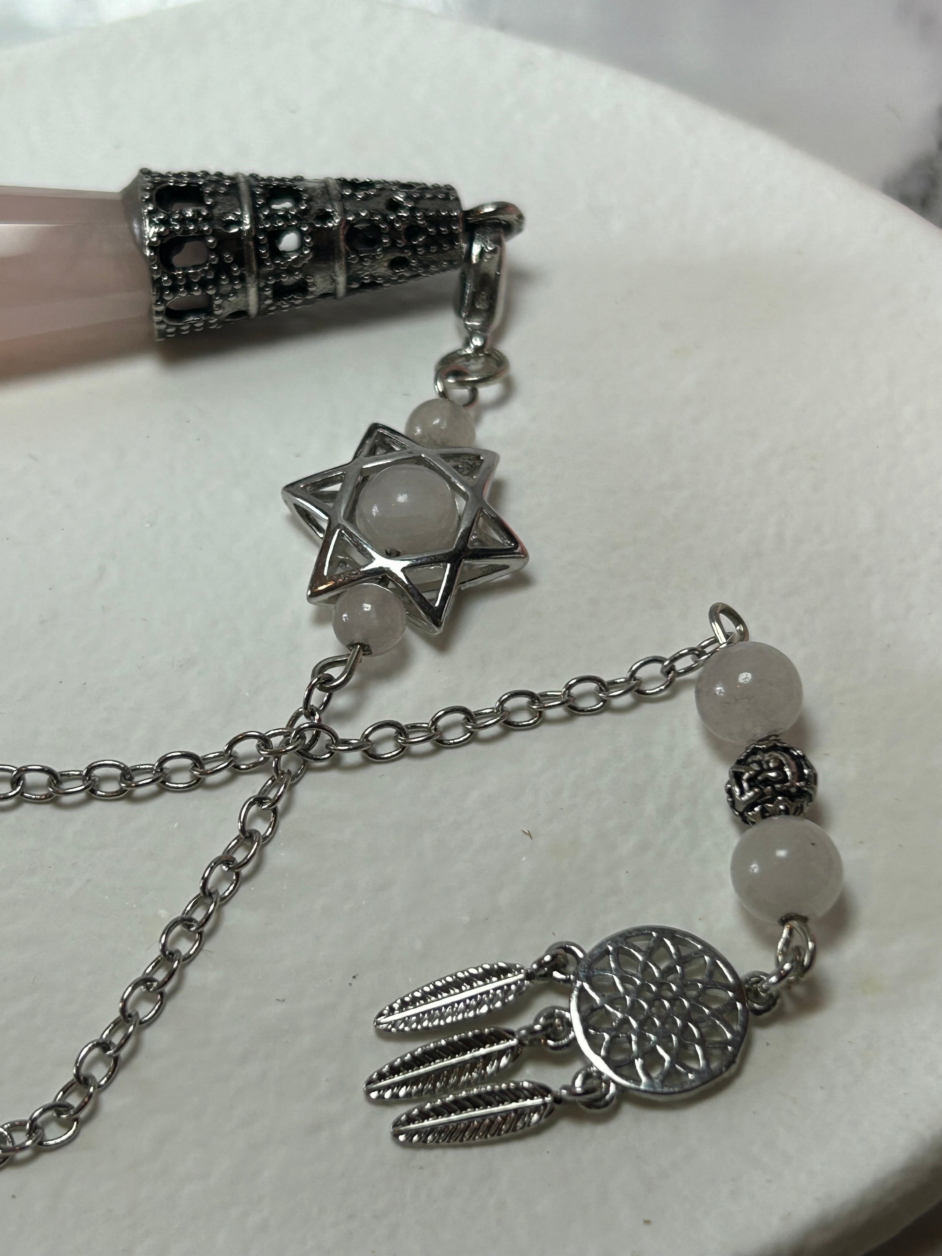 ボリュームたっぷりのローズクォーツペンデュラムです。