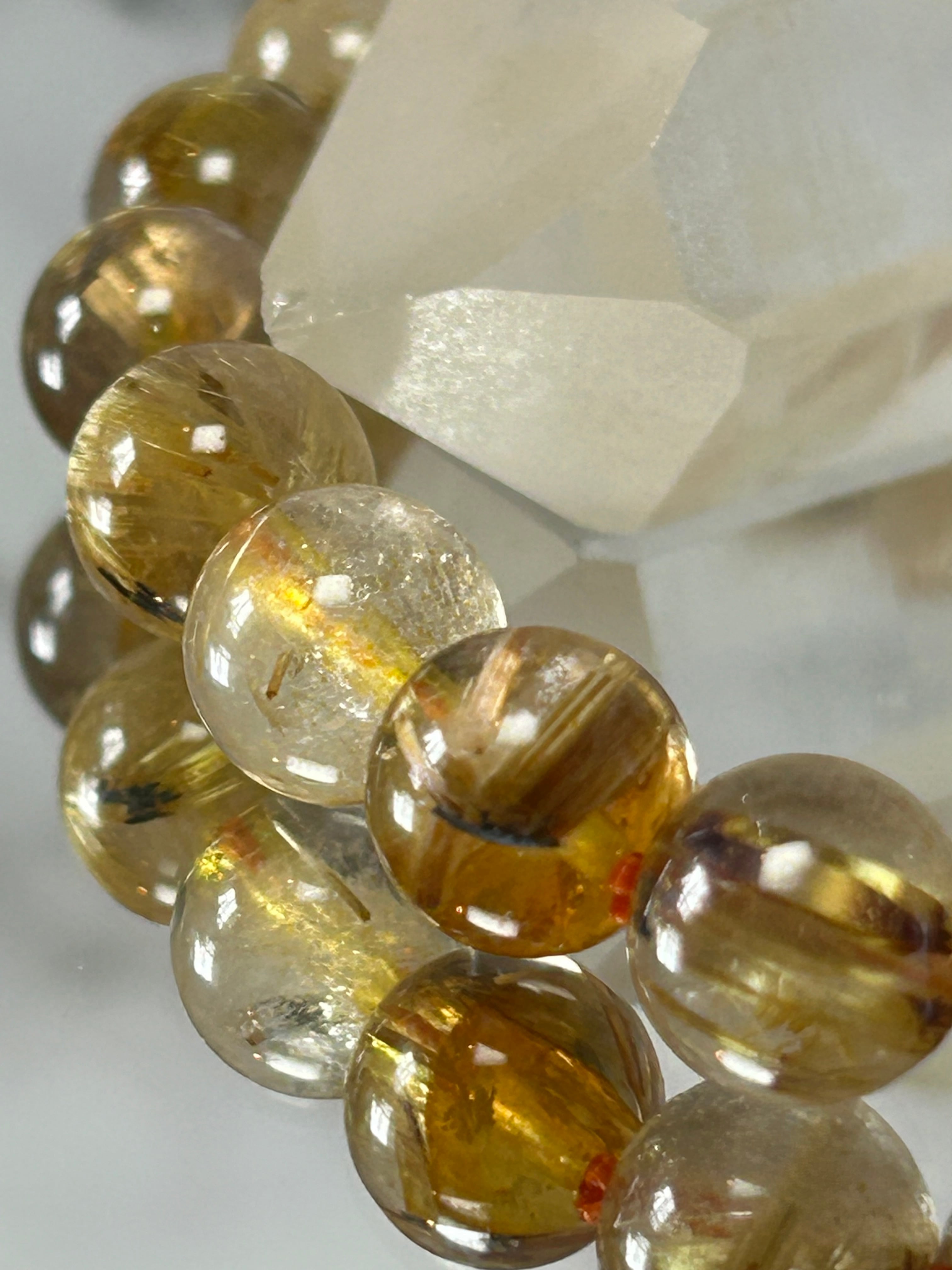 ルチルクォーツ ブレスレット 9mmは、美しい針がたっぷりと含まれた、上品な玉のサイズが特徴です。