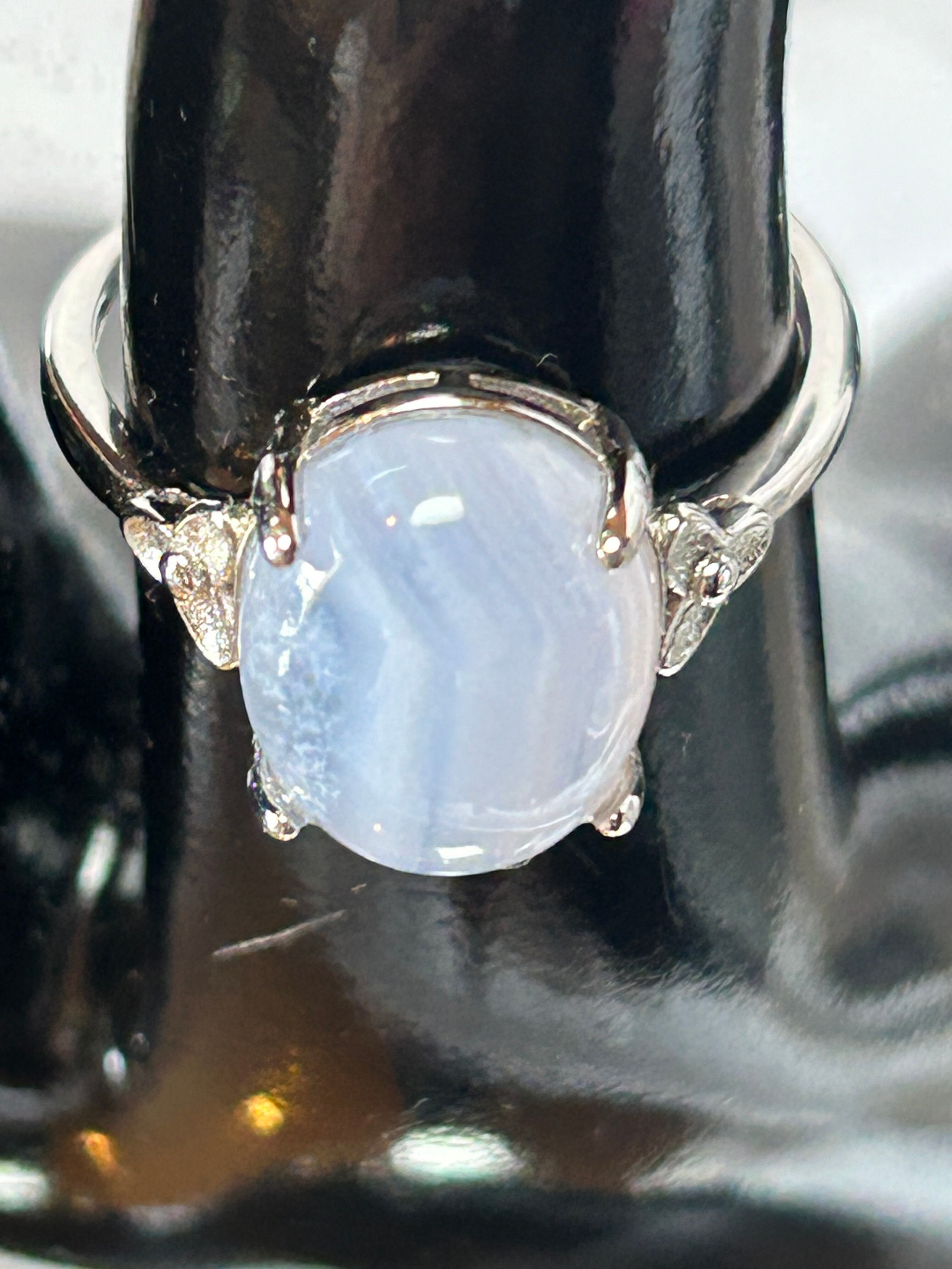 存在感のある大きなブルーレースアゲートストーンが魅力のリング。