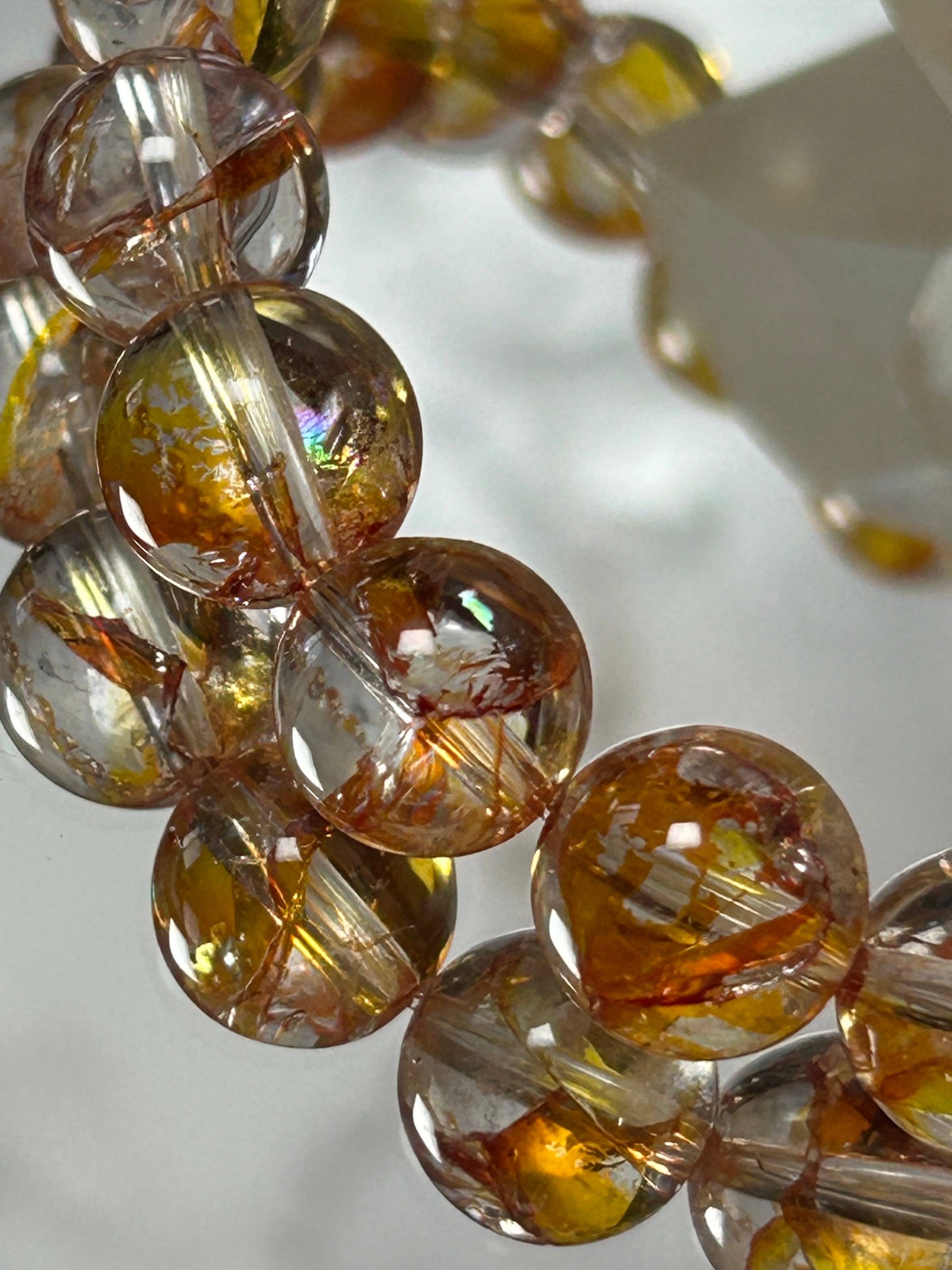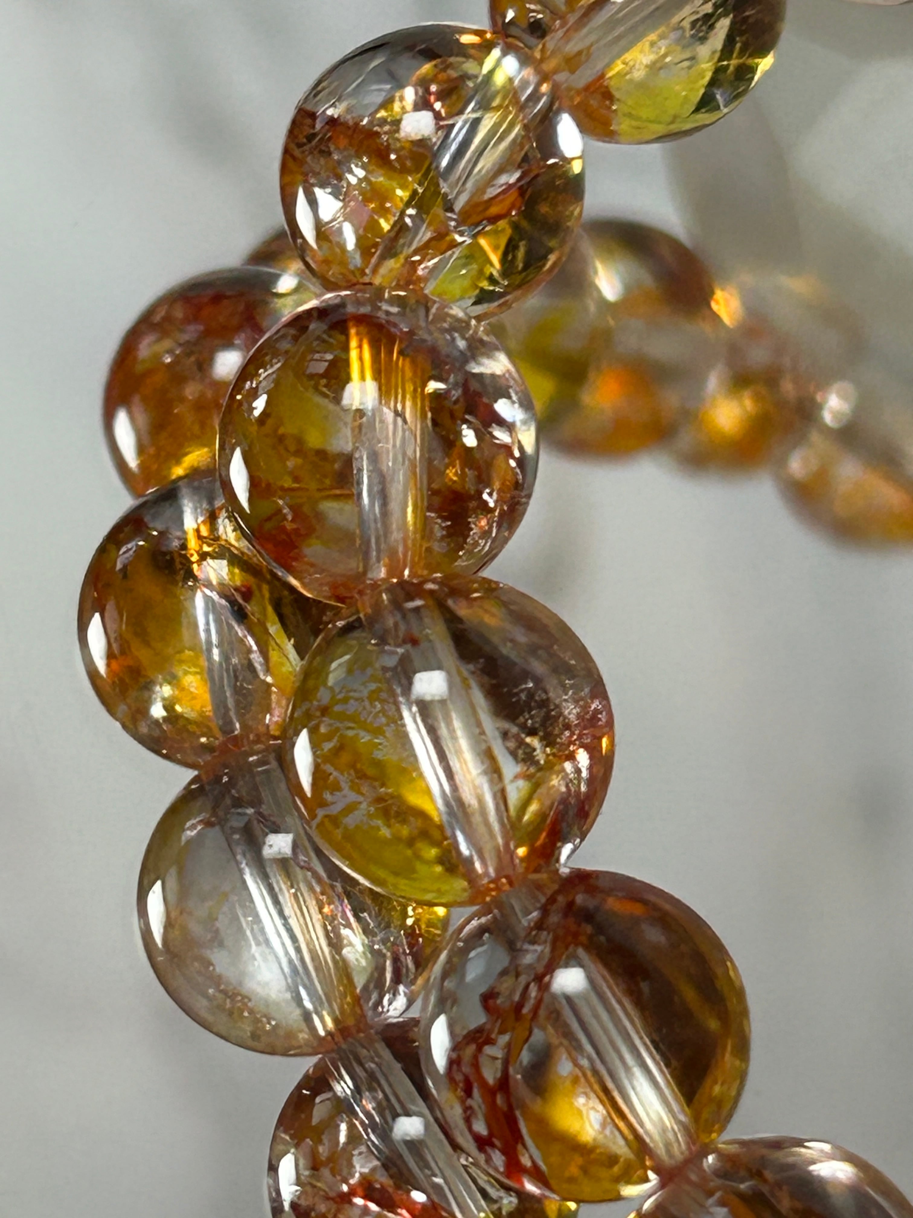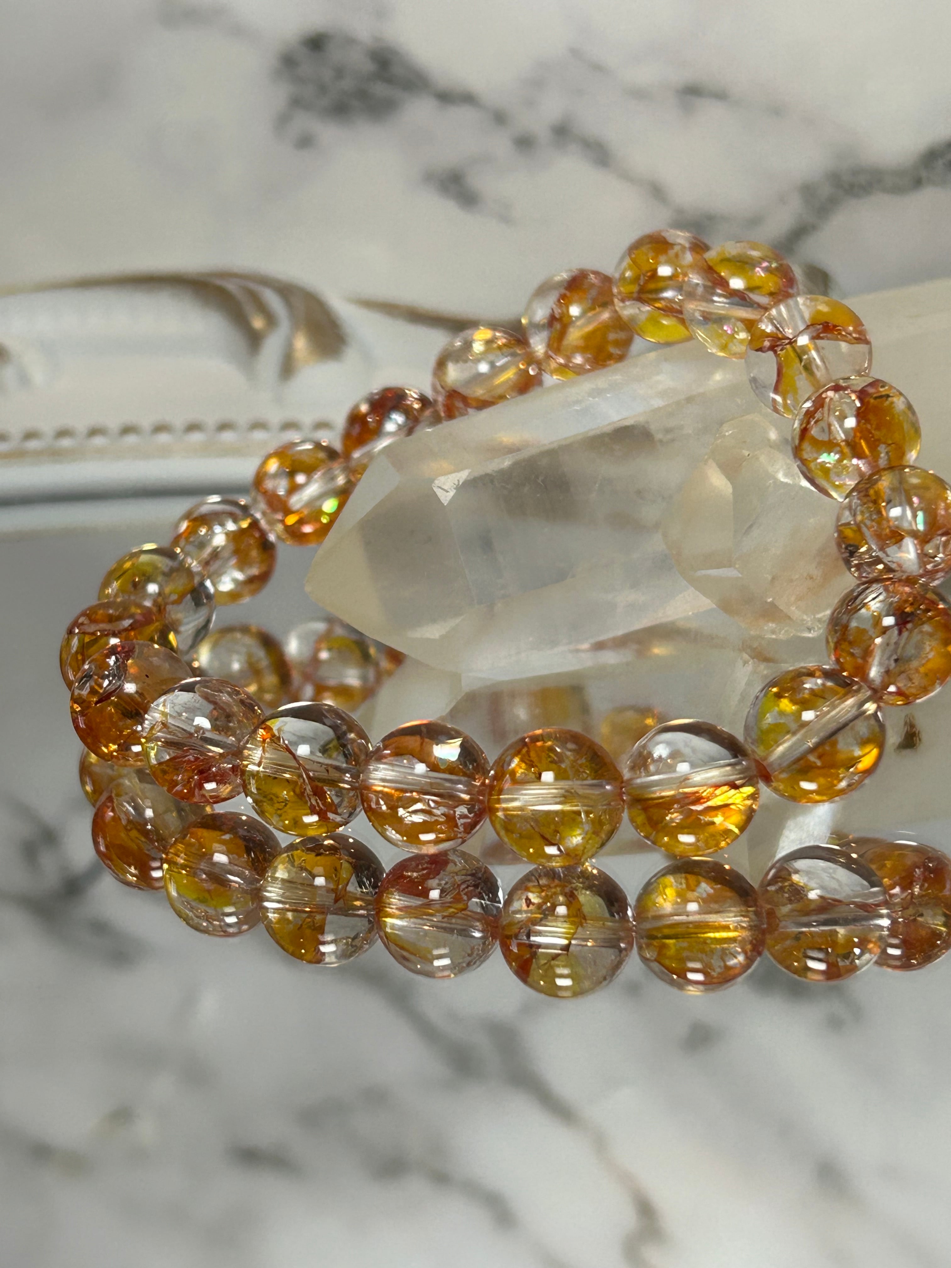 ライモナイトインクォーツは、その独特な光沢と色味が魅力的であり、さらに内包された鉱物が均一に分布することで、個々のブレスレットが統一感を持っています。