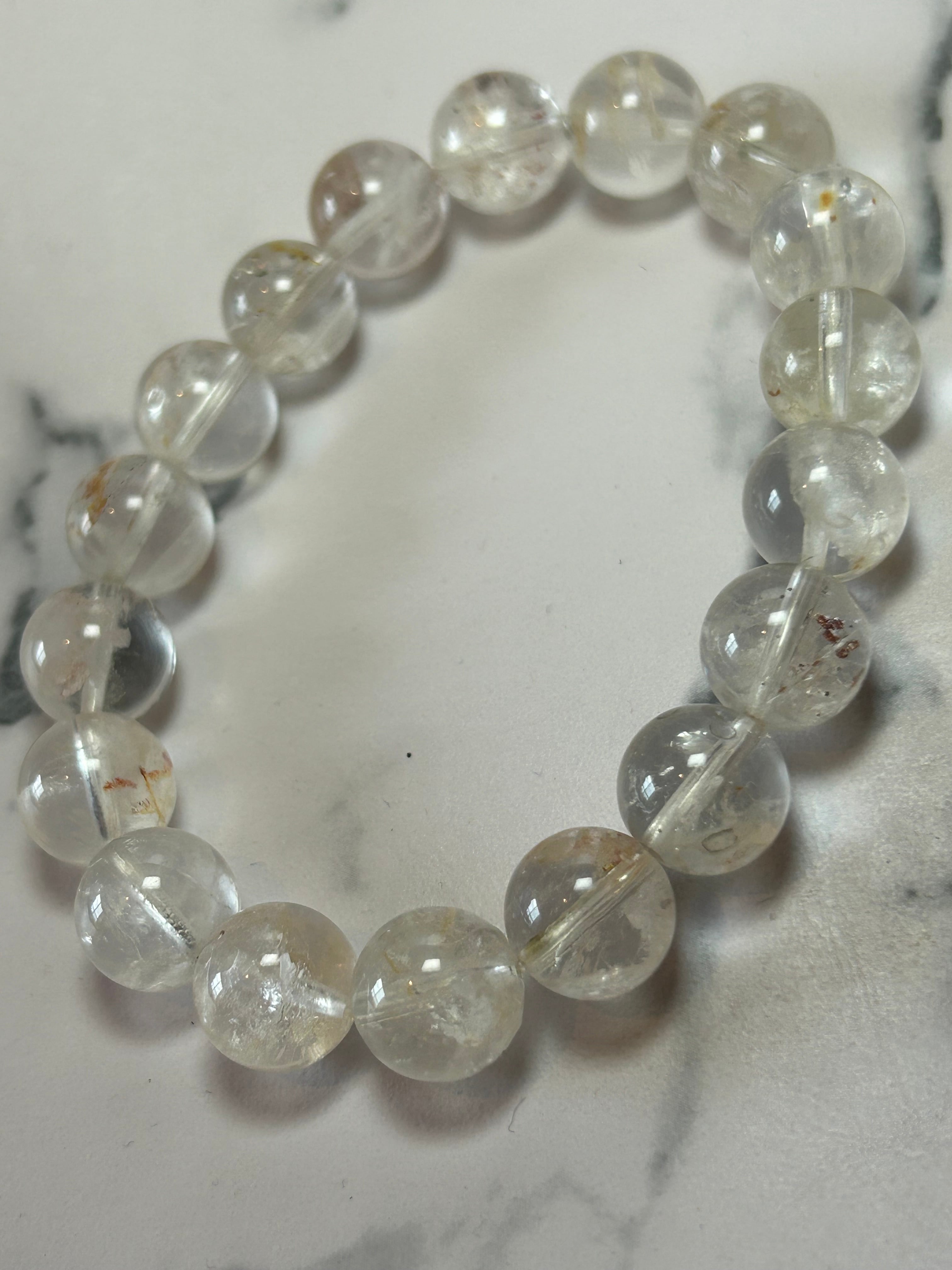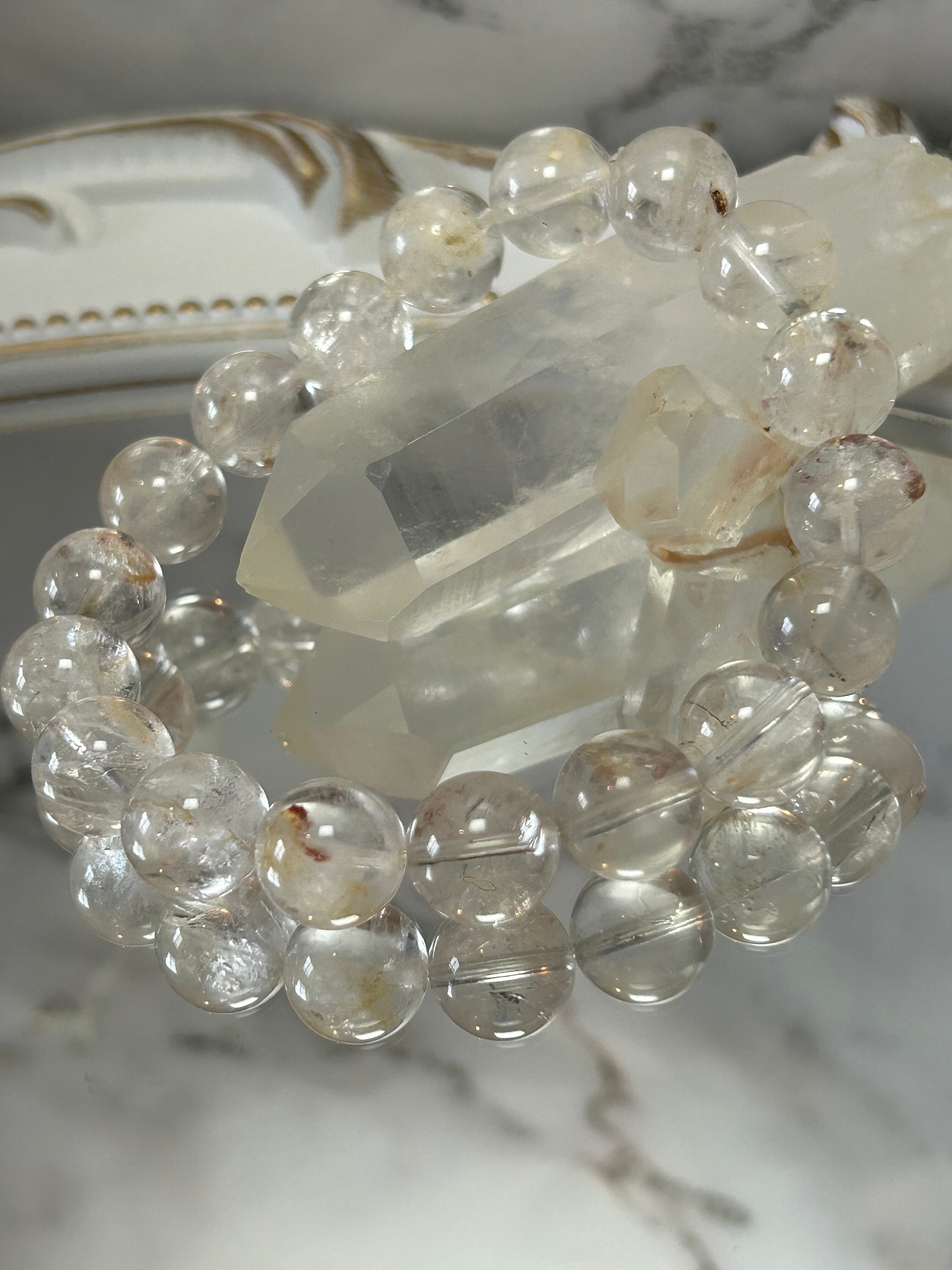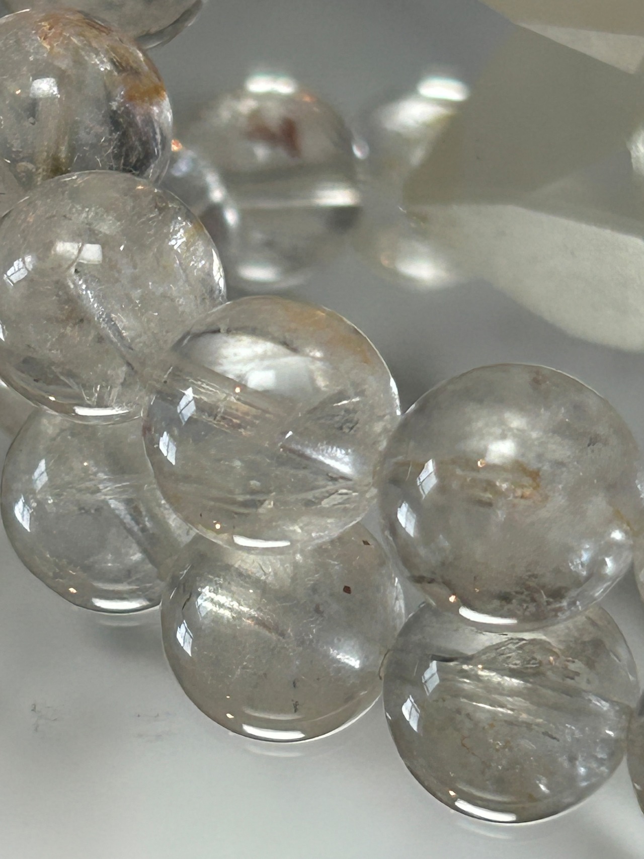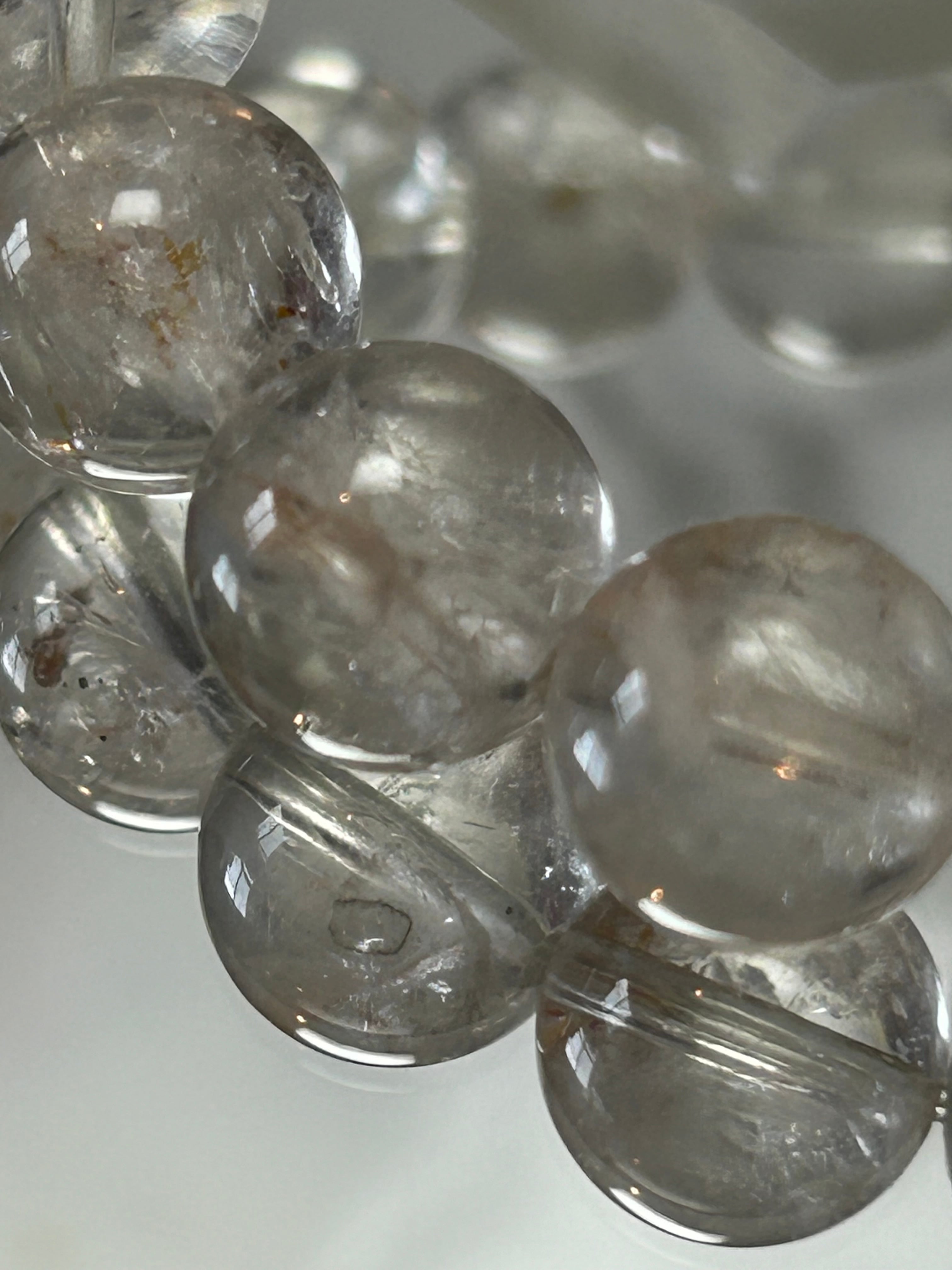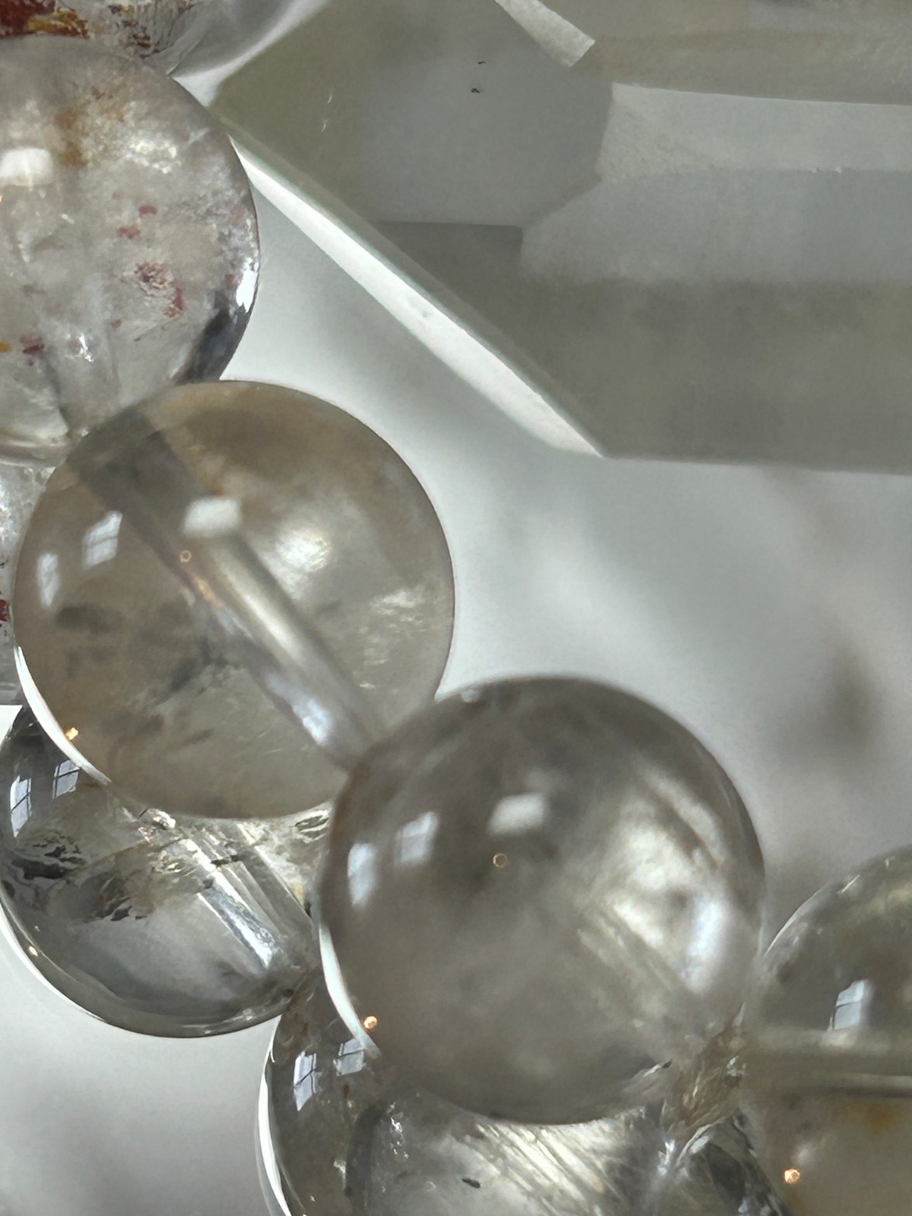 存在感抜群の11mmのファントム水晶ブレスレット。内包物の入りにムラがあるため、お手頃価格でご提供致します。