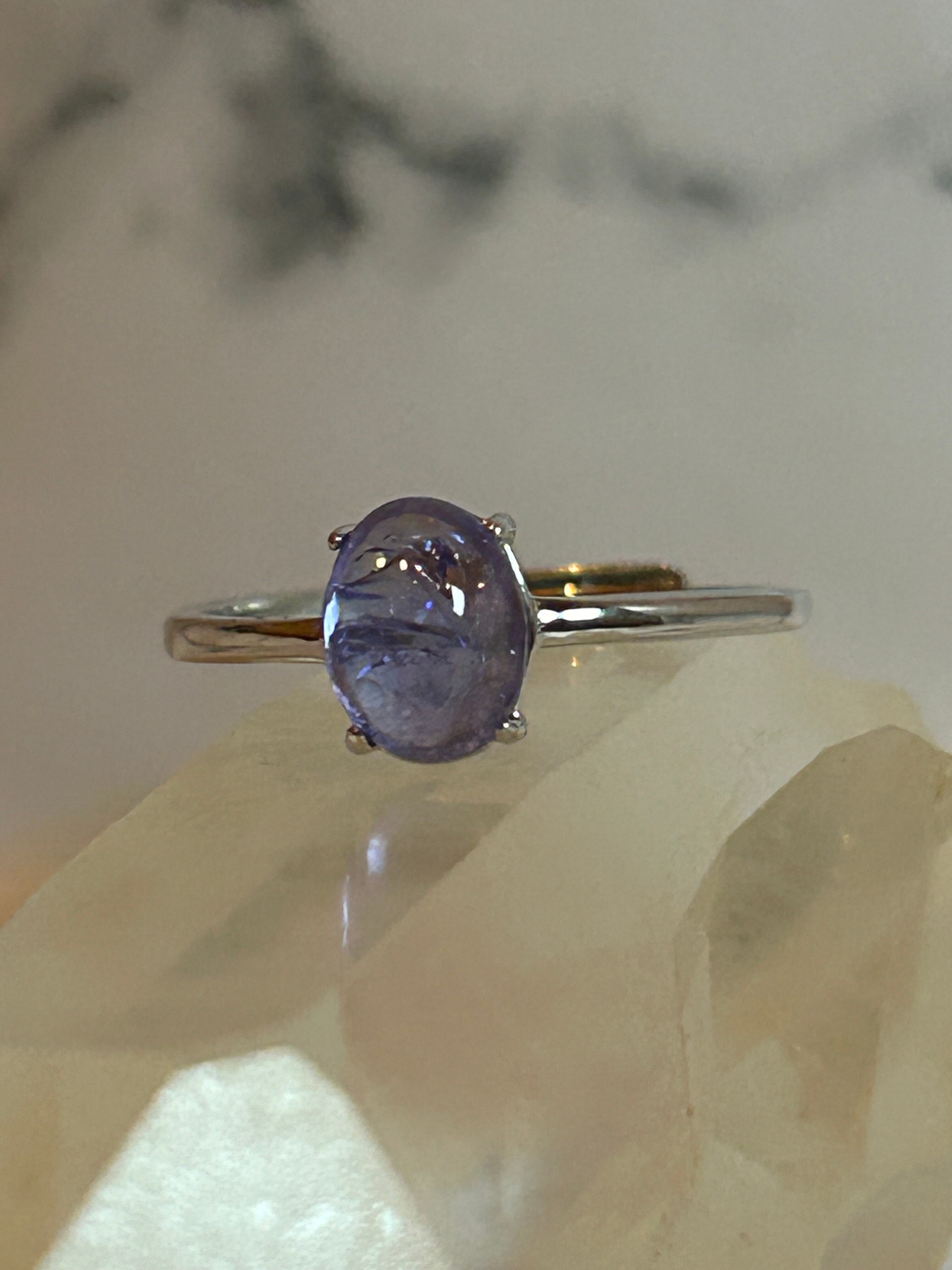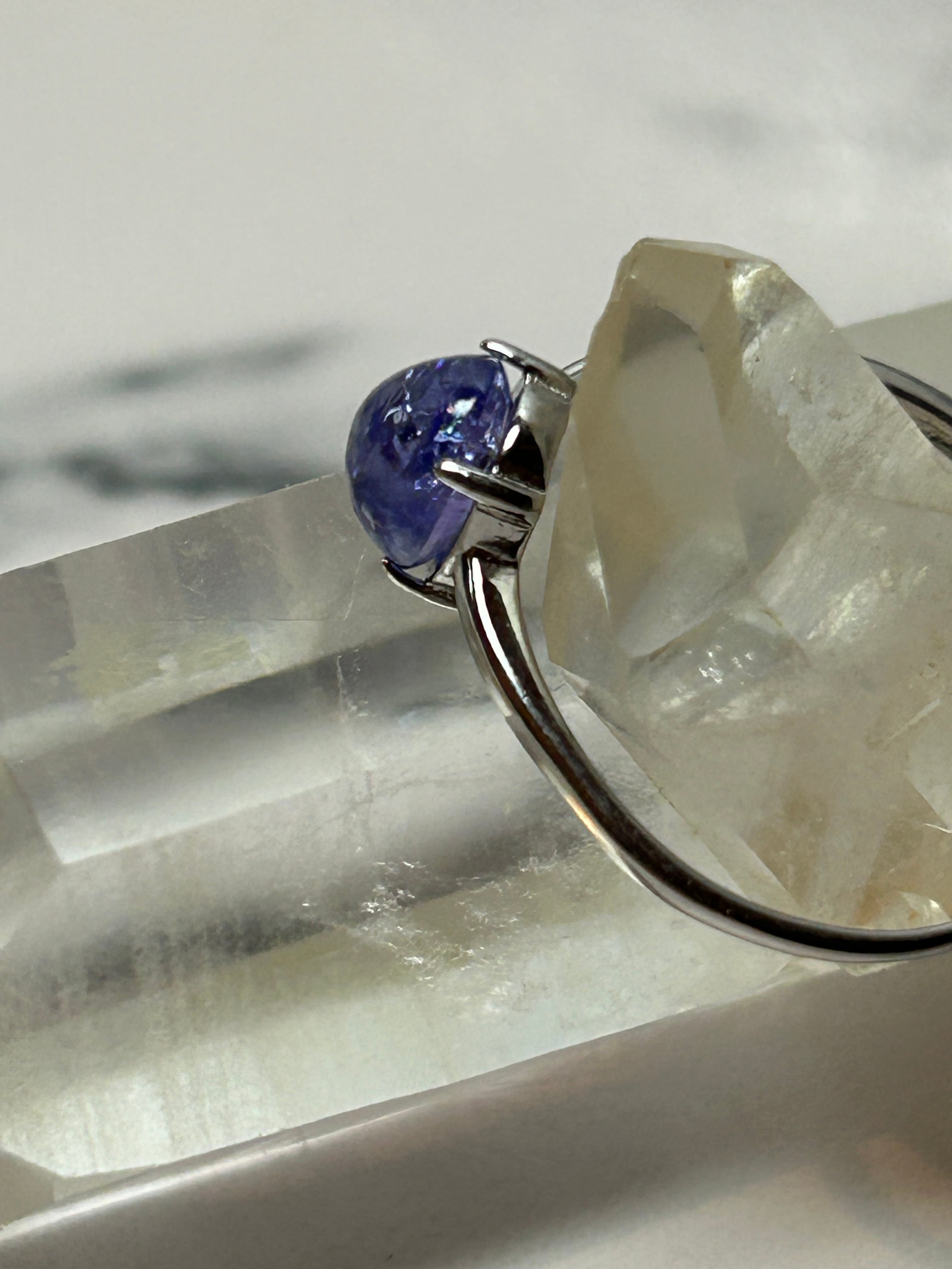 透明感抜群のタンザナイトを使用し、フリーサイズのつくりですが15~15.5号位の華奢なサイズ感が特徴です。