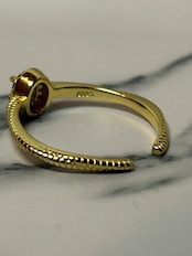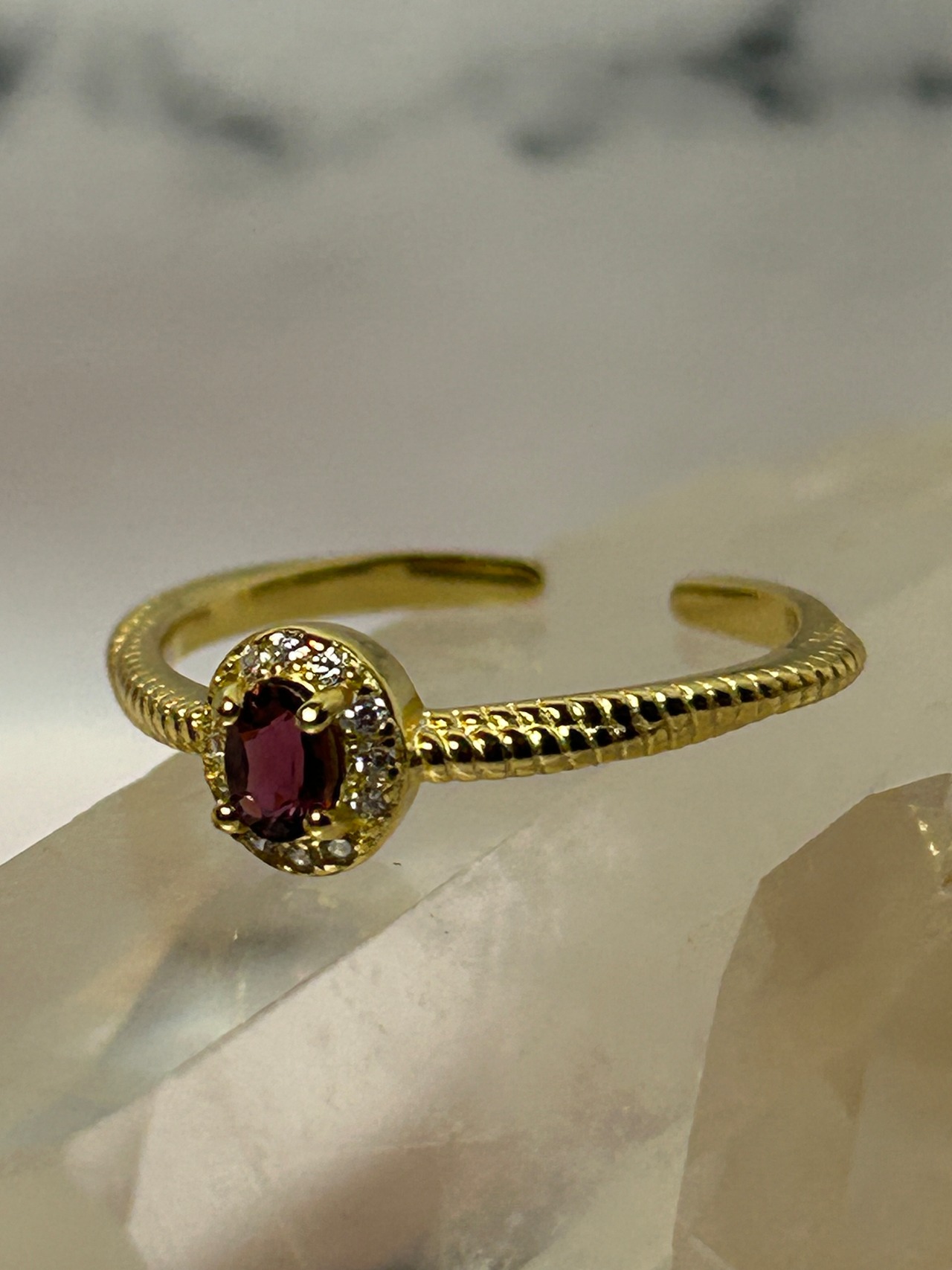 10月の誕生石であるトルマリンを使用したこの美しいリングは、ダークなピンクからレッドに見える色合いが特徴的です。