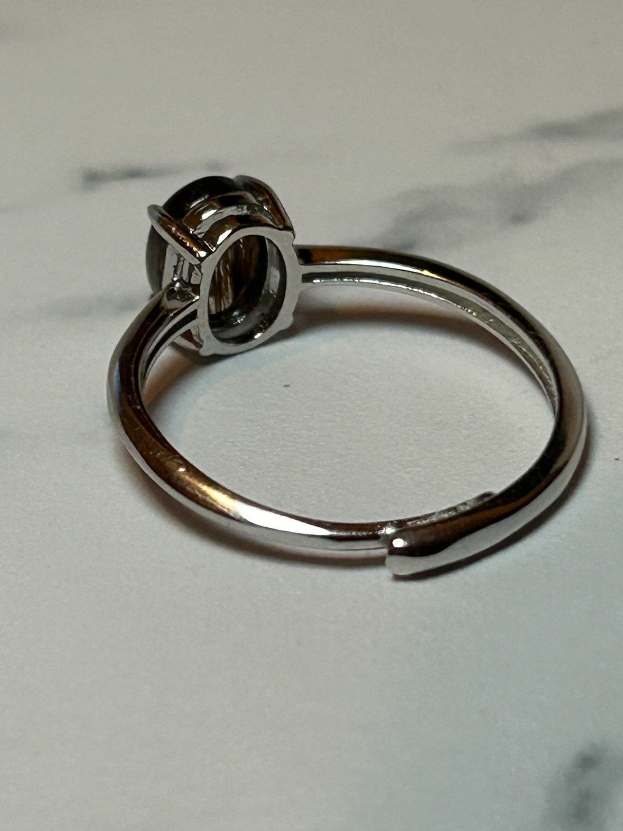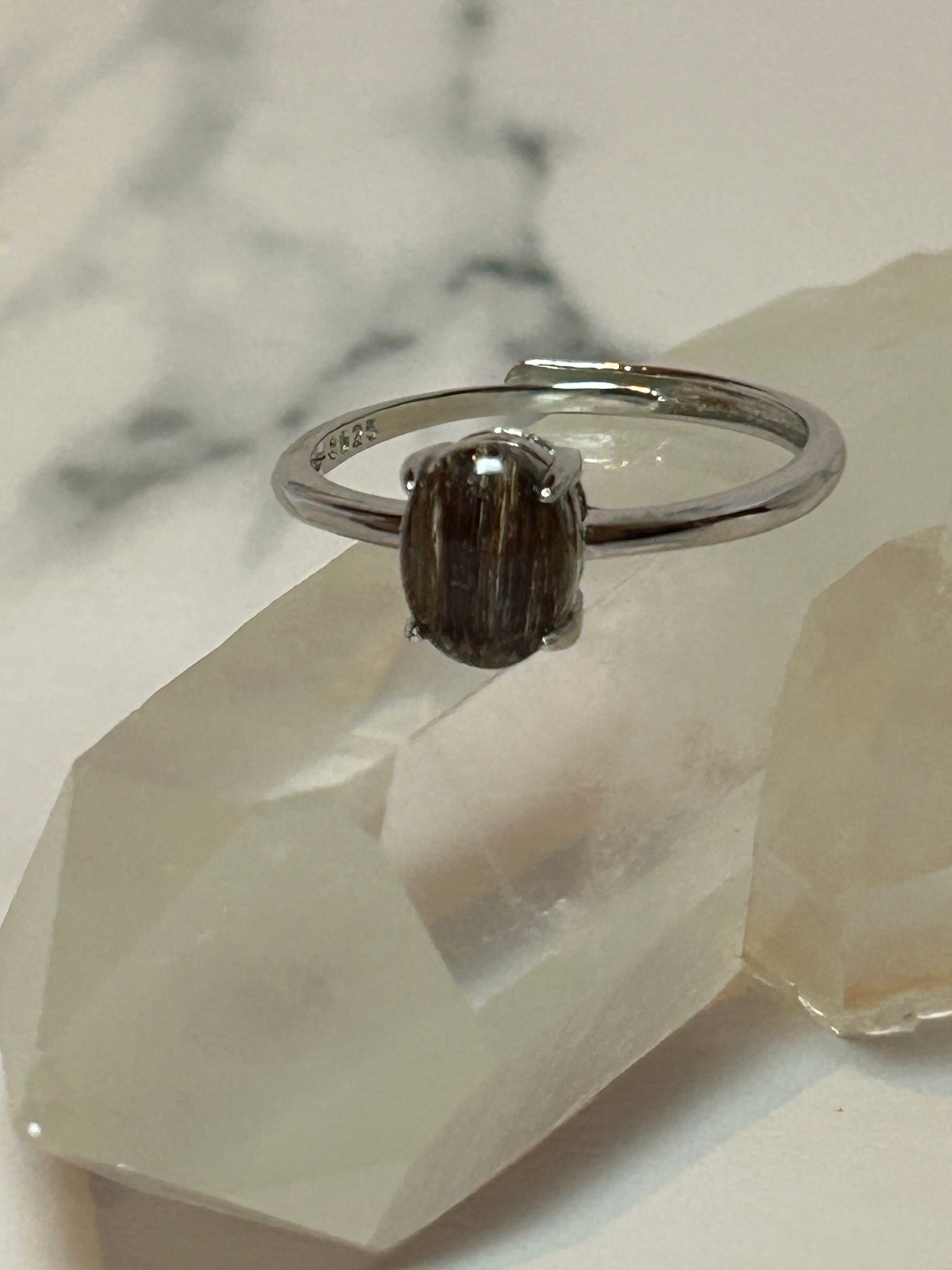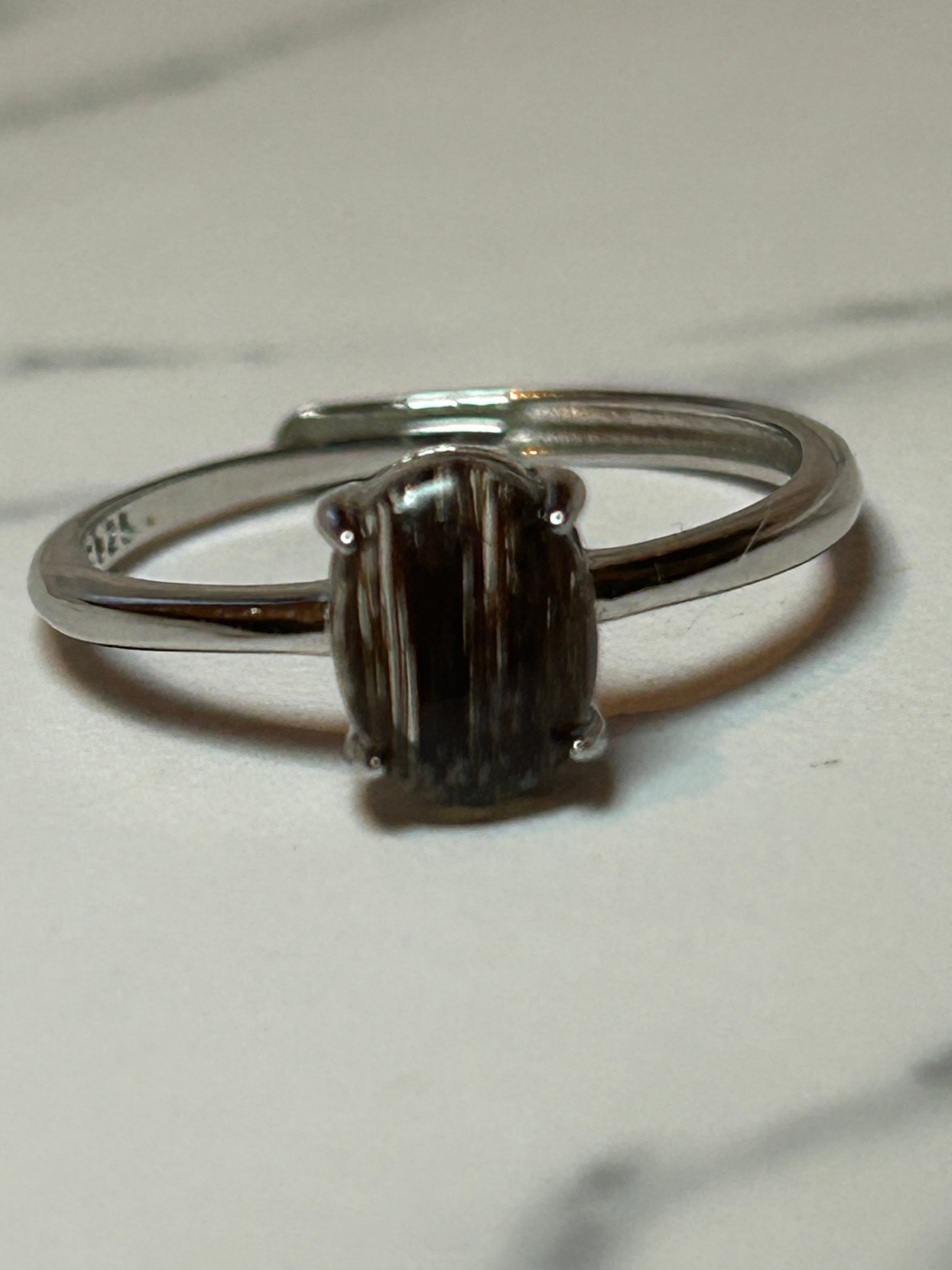 ダークな色合いと縦に細かく入った針が特徴的で、神秘的な雰囲気のシンプルデザインのリングです。