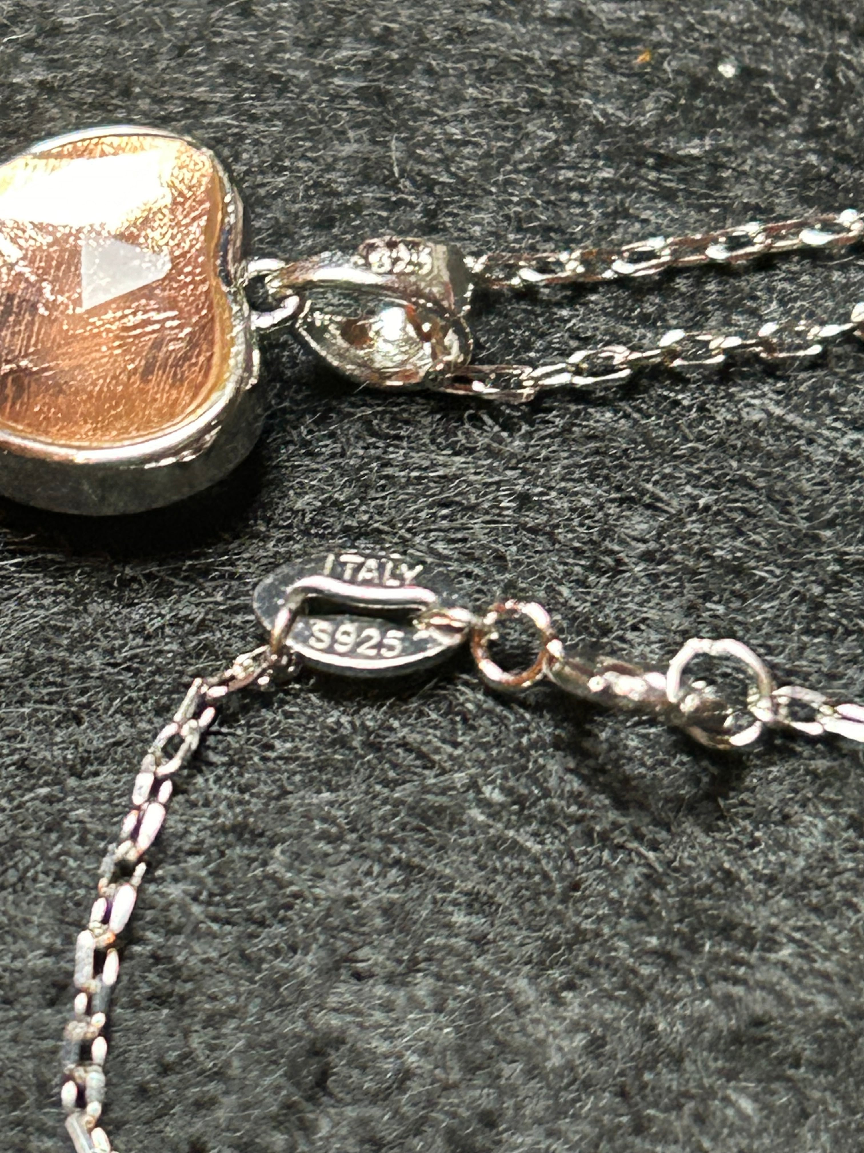両面共に美しい石が見える、可愛らしいハートモチーフが特徴のネックレスです。