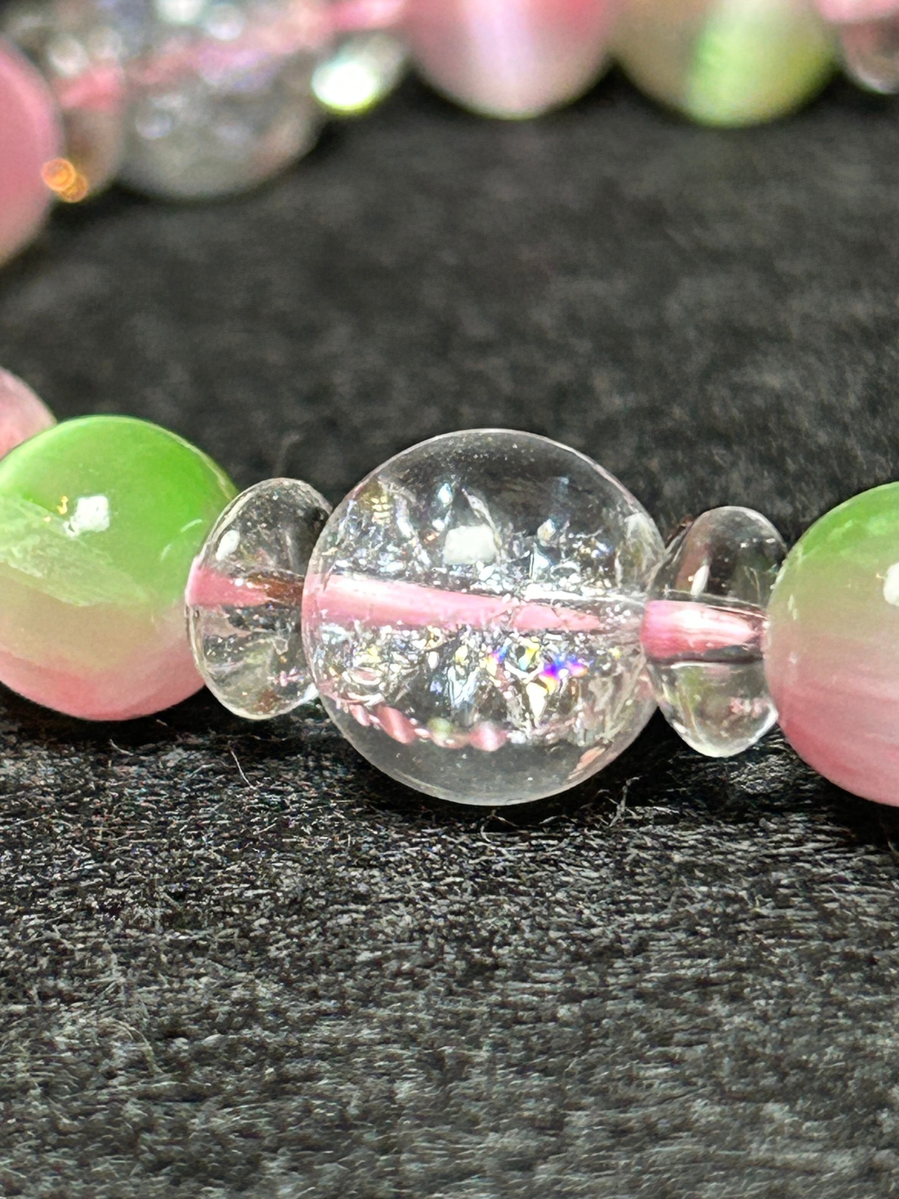 ピンクキャッツアイ&セレナイト ブレスレットです。