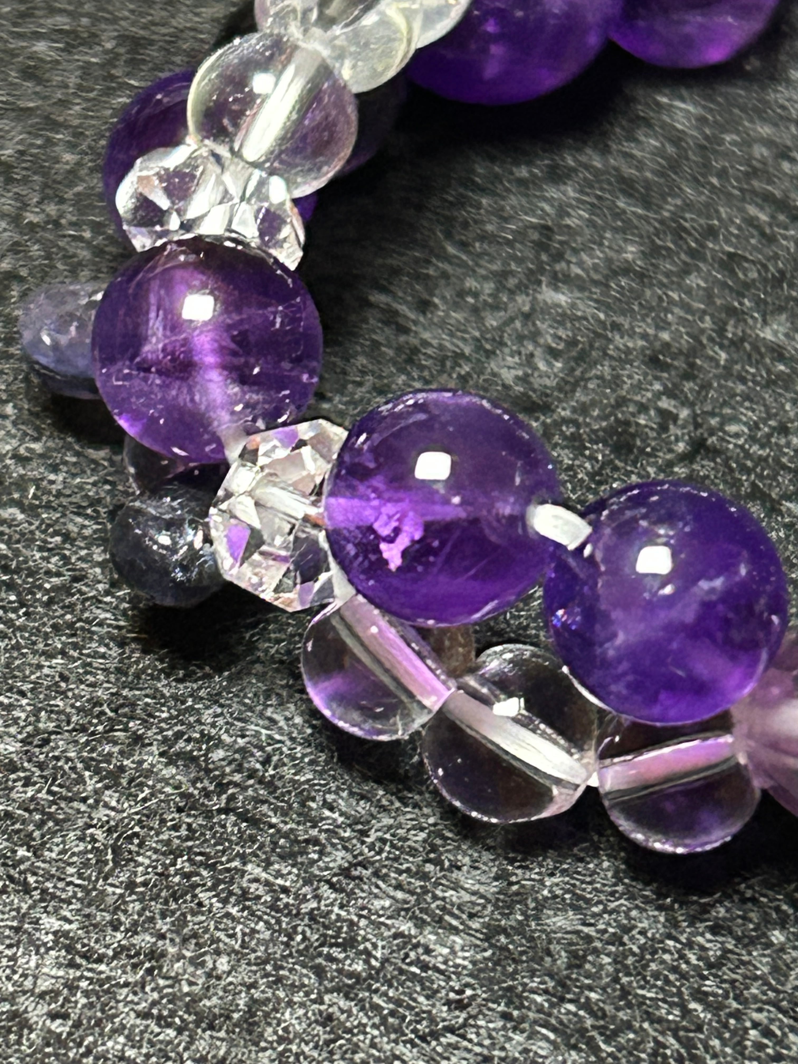 鮮やかな紫色のアメジストが華やかさを引き立て、アイオライトのアクセントが魅力を添えています。