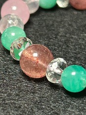 優しい色合いのストロベリークォーツと差し色として使われたアマゾナイトを組み合わせたブレスレットです。